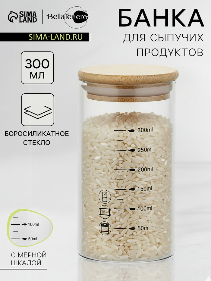 Банка для сыпучих продуктов BellaTenero «Эко» изготовлена из стекла. Крышка с силиконовым уплотнителем защитит продукты от влаги и посторонних запахов.