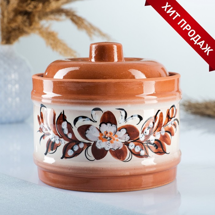 Почему выбрать эту емкость Изысканная текстура и устойчивость к повреждениям делают эту емкость не просто функциональным предметом, но и стильным аксессуаром для кухни. Наличие рисунка развлечёт глаз, создавая уютную атмосферу. Используйте её для рациональной организации пространства и удобного хранения. Несмотря на отсутствие возможности мытья в посудомоечной машине, керамическая емкость легко чистится, что обеспечивает простоту ухода. Комментарии к товару