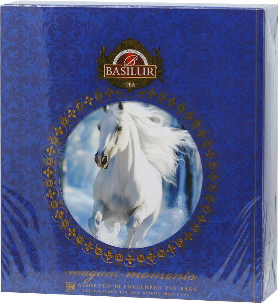Ассорти черного цейлонского байхового мелколистового чая с натуральными ароматами. В составе ассорти (по 10 пакетиков) купажи со вкусами:1. «Морошка»2. «Шоколад-Кленовый сироп»3. «1001 ночь»4. «Вишня»BASILUR Magic Moments в яркой красочной упаковке станет отличным дополнением к любому подарку!