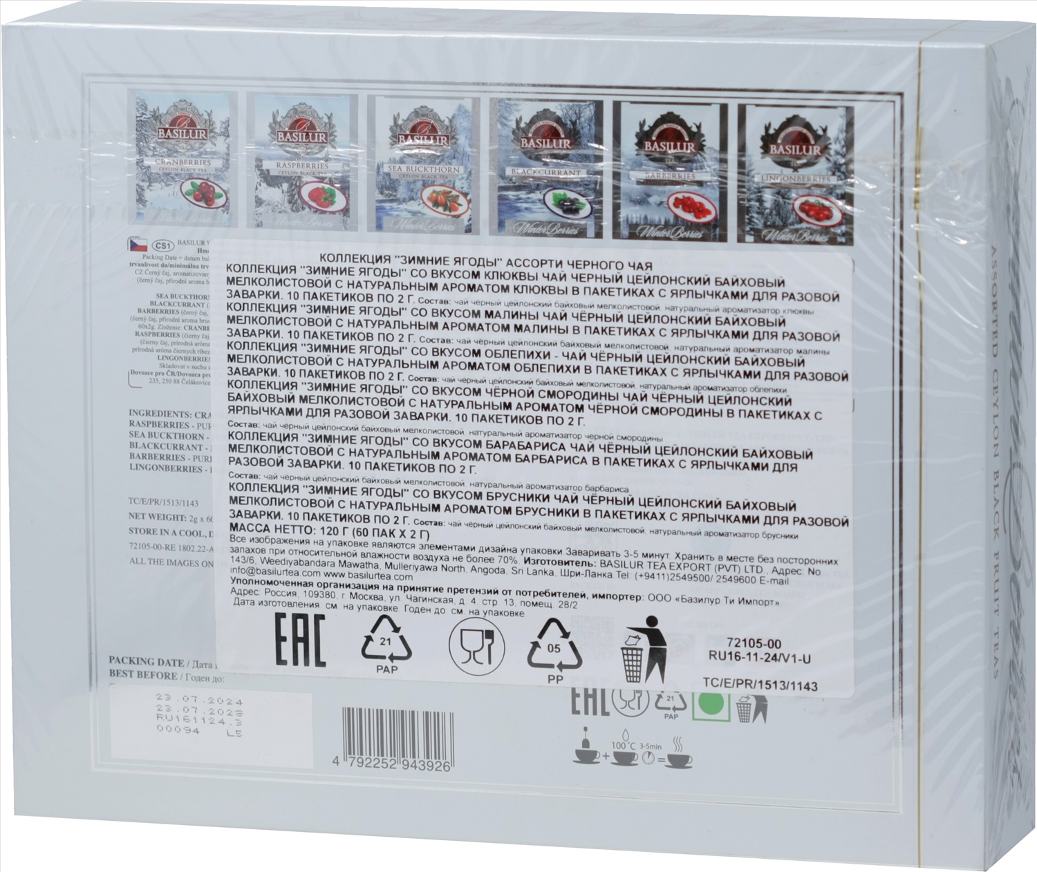 Ассорти черного цейлонского чая с натуральными раcтительными добавками.1. Чай черный цейлонский мелколистовой, натуральный ароматизатор «Клюква».2. Чай черный цейлонский мелколистовой, натуральный ароматизатор «Малина».3. Чай черный цейлонский мелколистовой, натуральный ароматизатор «Облепиха».4. Чай черный цейлонский мелколистовой, натуральный ароматизатор «Черная смородина».5. Чай черный цейлонский мелколистовой, натуральный ароматизатор «Барбарис».6. Чай черный цейлонский мелколистовой, натуральный ароматизатор «Брусника».Настоящее фруктовое удовольствие из самого сердца чайного мира!
