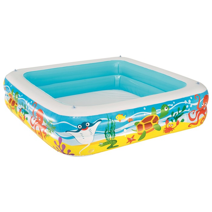 Габариты: 10,5 x 33 x 30 Артикул поставщика: 52192 Страна: Китай В боксе: 3 шт Состав: ПВХ Материалы: ПВХ Фасовка: по 1 шт Индивидуальная упаковка: Картонная коробка Габариты товара: 147 см × 147 см × 122 см Сертификат: ЕАС Причина уценки: помята коробка; порвана коробка Форма: Квадратная Вид бассейна: Надувной Длина, см: 140 Ширина, см: 140 Высота, см: 114 Возраст: От 2 лет Вес нетто, кг: 2,58 Объём, л: 265 Материал: ПВХ Особенности: Тент Надувное дно: Нет Темпер. ограничение НЕ НИЖЕ ℃: 0 Бассейн «Морские глубины» подарит ребенку массу положительных эмоций в жаркий день. С ним ребёнок разнообразит досуг и освежится в летний зной. Съёмный навес обеспечивает защиту от солнца, и малыш сможет наслаждаться игрой, защищенный от палящего солнца. Яркий бассейн изготовлен из безопасных и прочных материалов, устойчивых к различным погодным условиям, прыжкам и проколам. Особенности