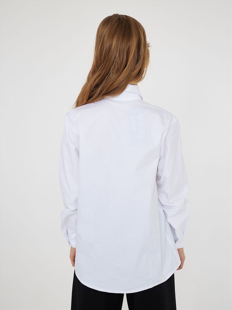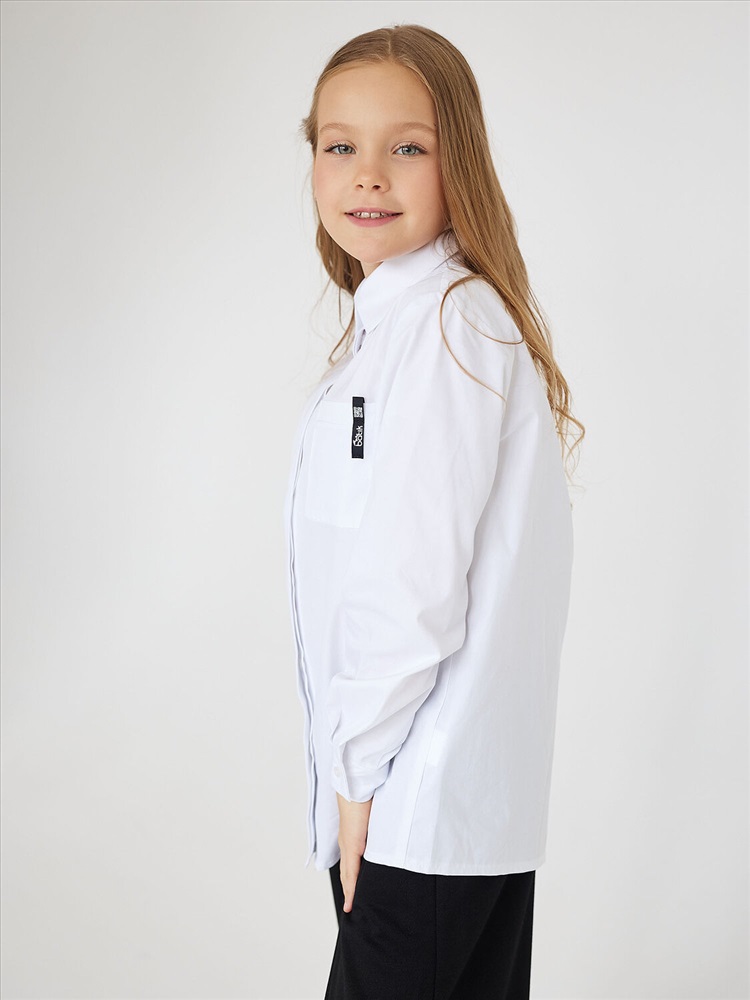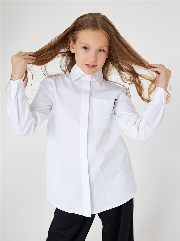 Блузка с длинным рукавом для девочки. Карман на груди, застежка на петли пуговицы. Школьная блузка прямого покроя из качественной ткани, в составе которой натуральный хлопок и полиэстер отличается особой износостойкостью и приятна к телу.