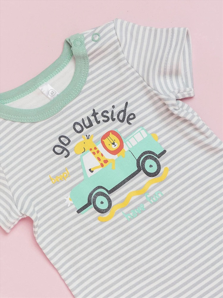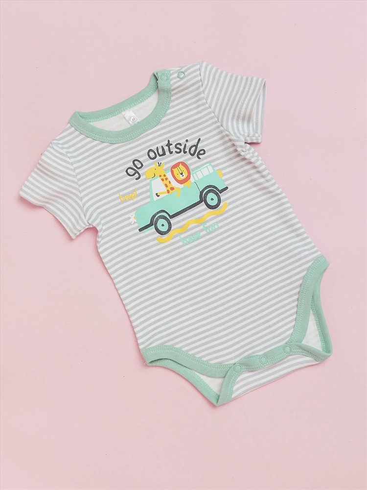 Боди с коротким рукавом batik с принтом в полоску и рисунком для мальчиков выполнен из 100% хлопка. Идеально подходит для новорожденных малышей и может использоваться с первых месяцев жизни. Боди оснащен застежками в виде кнопок на плечах и по низу.