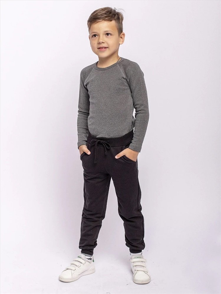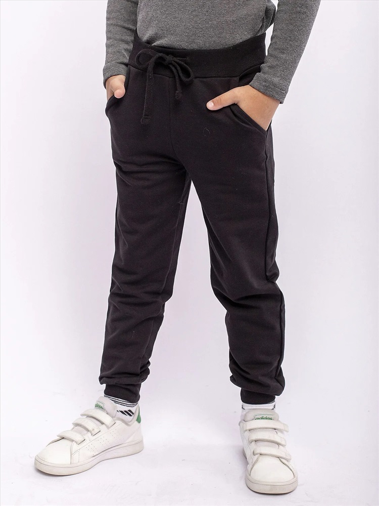 Брюки спортивные для детей из футера вы можете купить в нашем интернет-магазине. Эластичный пояс со шнурком, боковые карманы, однотонная черная расцветка.