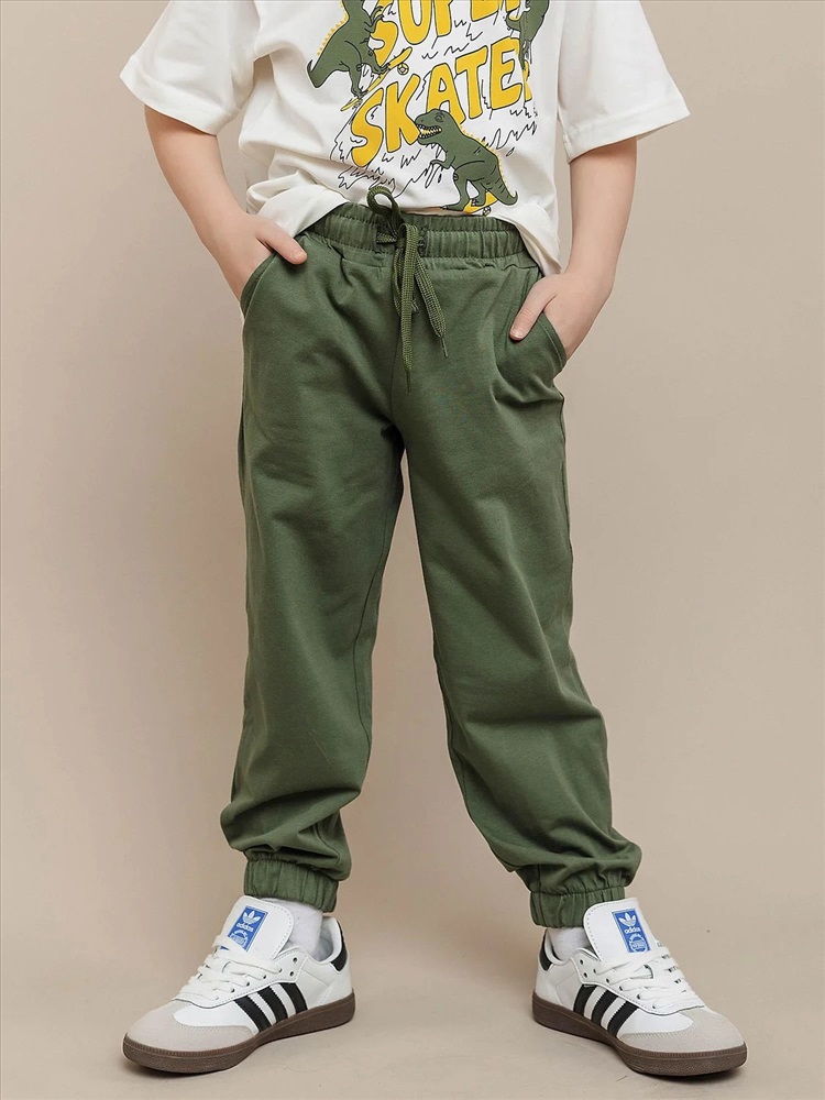Брюки для мальчика трикотажные спортивные из футера 2х нитки. Модель отличается удобным поясом на эластичном шнурке, боковыми карманами, идеальной посадкой. Свободные брюки будут отлично сочетаться с худи и футболками.