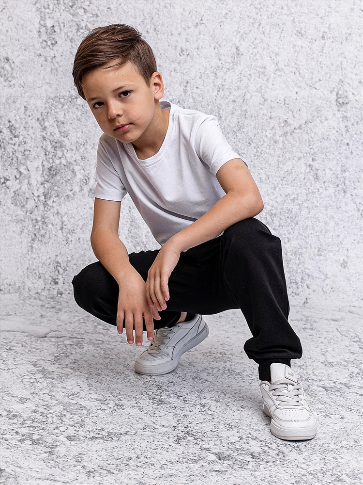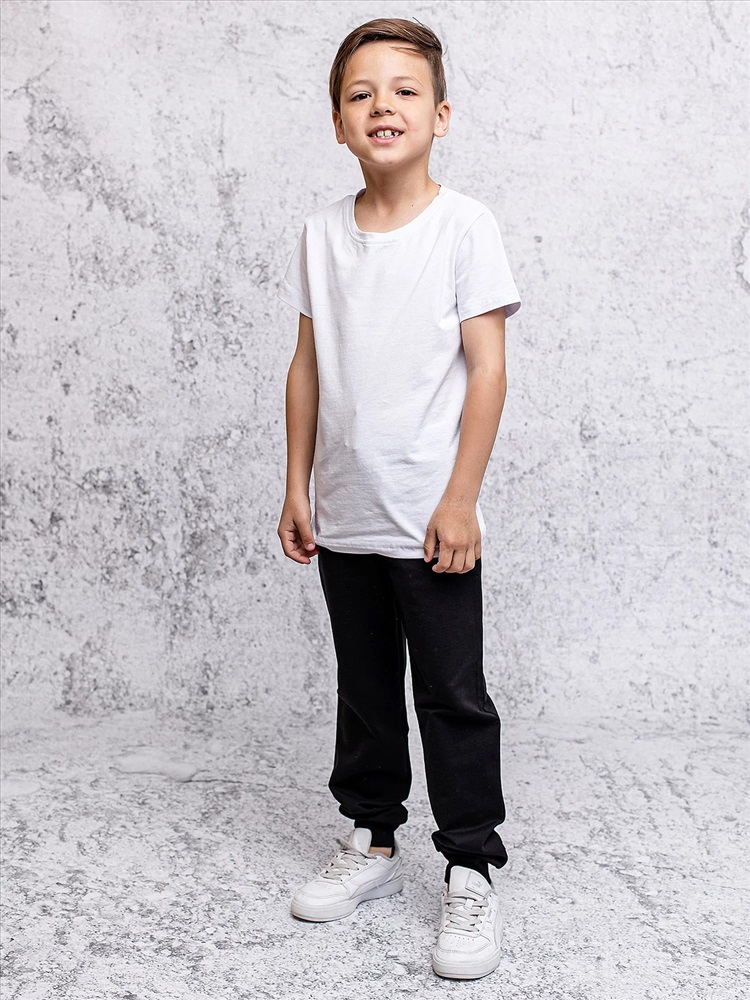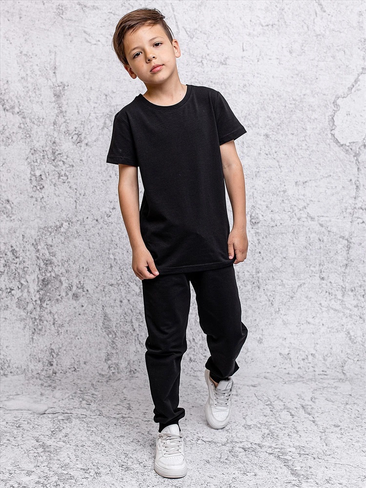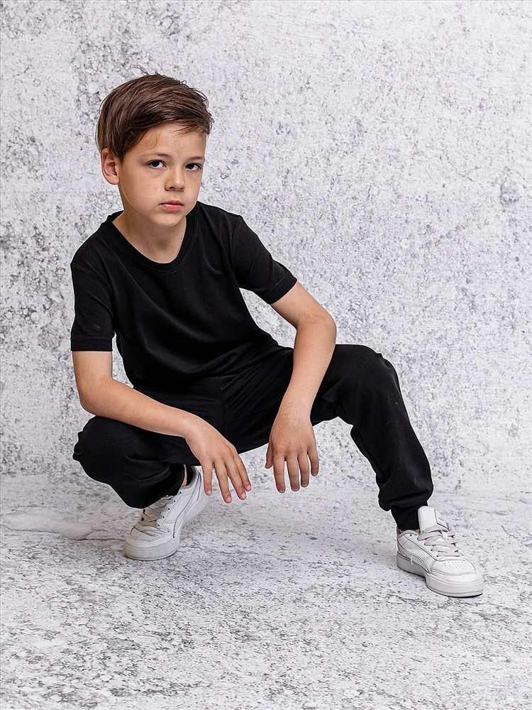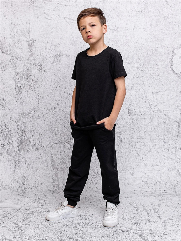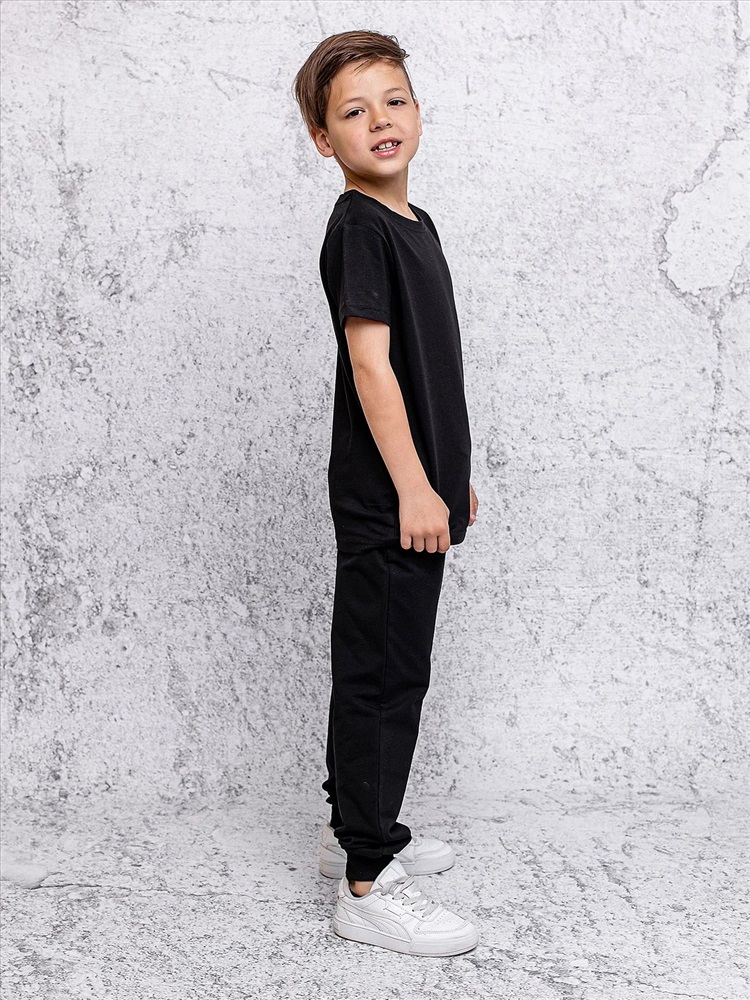 Брюки спортивные черные для детей с карманами из футера. Легкие базовые штаны с резинкой в нижней части брючин подойдут подросткам, мальчикам и девочкам, в любой сезон. Они станут любимой вещью в гардеробе вашего ребенка.