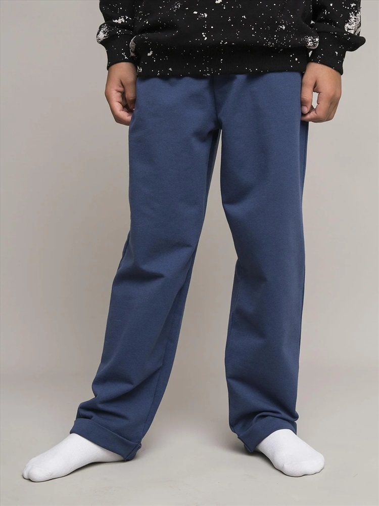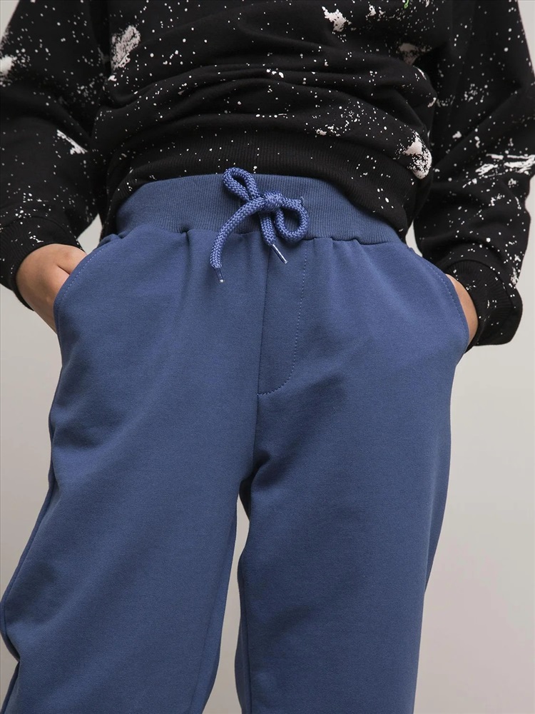 Теплые спортивные брюки насыщенного синего цвета, выполненные из мягкого футера. Идеальный вариант для прогулок, занятий спортом и повседневной носки.