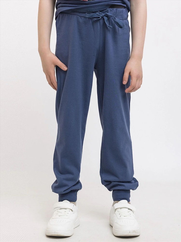 Стильные и практичные брюки для мальчика в спортивном дизайне. Удобный крой – свободный силуэт не сковывает движения. Практичный синий цвет сочетается с любой одеждой. Регулируемый пояс на резинке со шнурком. Практичные манжеты – низ штанин на резинке для удобства. Подходит для школы, прогулок и активных игр.