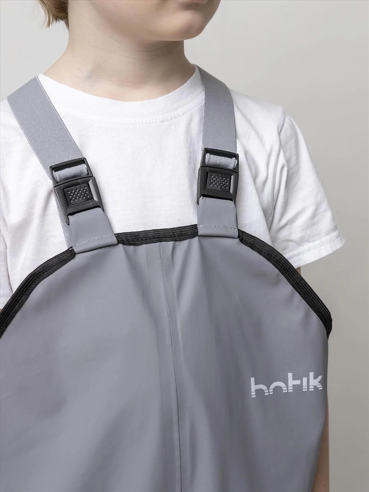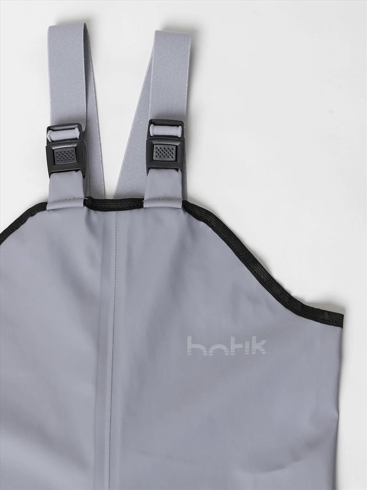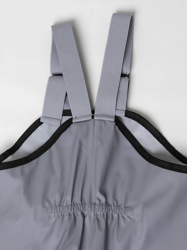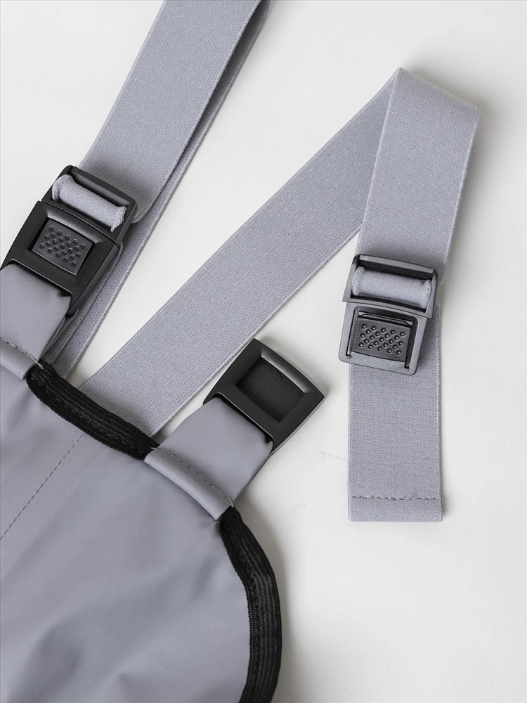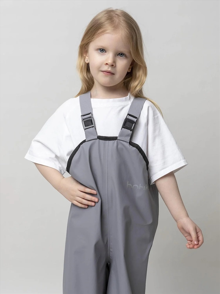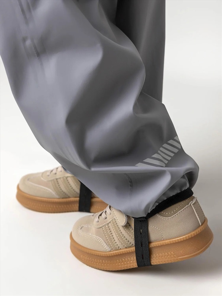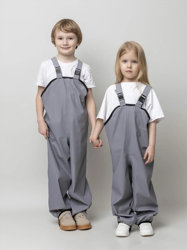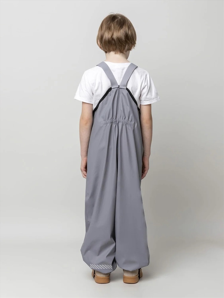 Непромокаемые брюки «Тоно» серого цвета. Выполнены из прорезиненной ткани на основе 100% полиэстера, которая надежно защищает от влаги и ветра. Практичная и удобная модель для прогулок и активного отдыха в дождливую погоду.
