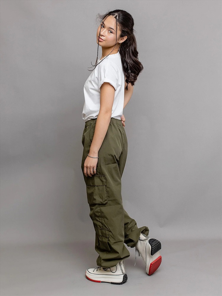 Брюки Карго в расцветке хаки для детей из хлопка и нейлона демисезонные неутепленные. Теплые брюки для мальчиков и девочек из коллекции Весна 2024. Детские брюки отлично защитят от влаги и гряди во время игр и прогулок на улице, подойдут для повседневной носки и активного отдыха. Пояс на резинке с регулировкой, боковые карманы и накладные карманы на брючинах. Низ брюк на резинке, широкий покрой.