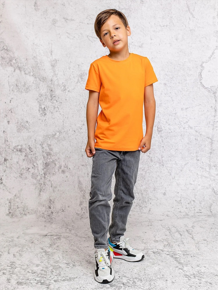 Футболка оранжевая с коротким рукавом для мальчиков и девочек из супрема пенье. Базовая однотонная детская футболка подойдет для спорта, активного отдыха и повседневной носки. Выполнена из натурального хлопка высокого качества.