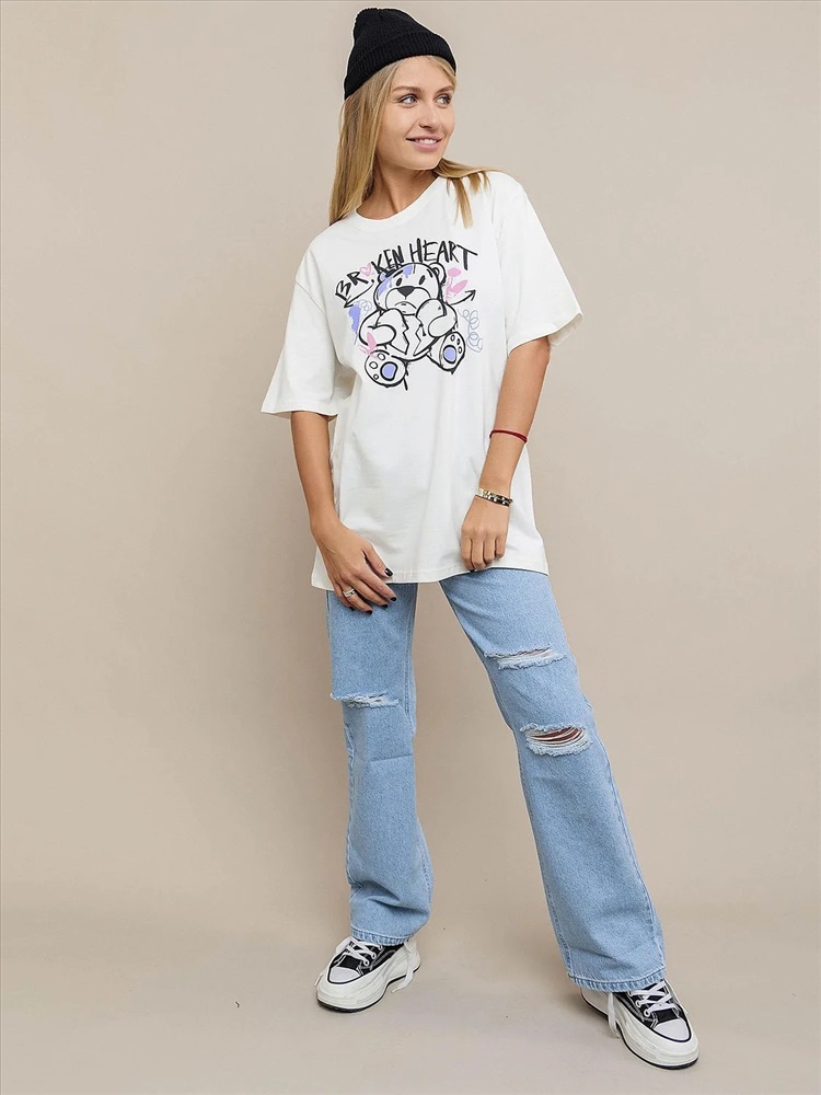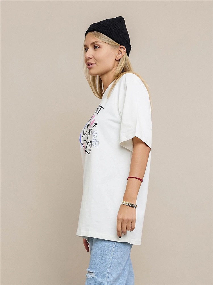 Футболка унисекс белая для детей и подростков с коротким рукавом из супрема пенье. Силуэт оверсайз, спущенный рукав, стильный принт. Подойдет для повседневной носки и активного отдыха. Изготовлена из ткани высокого качества.