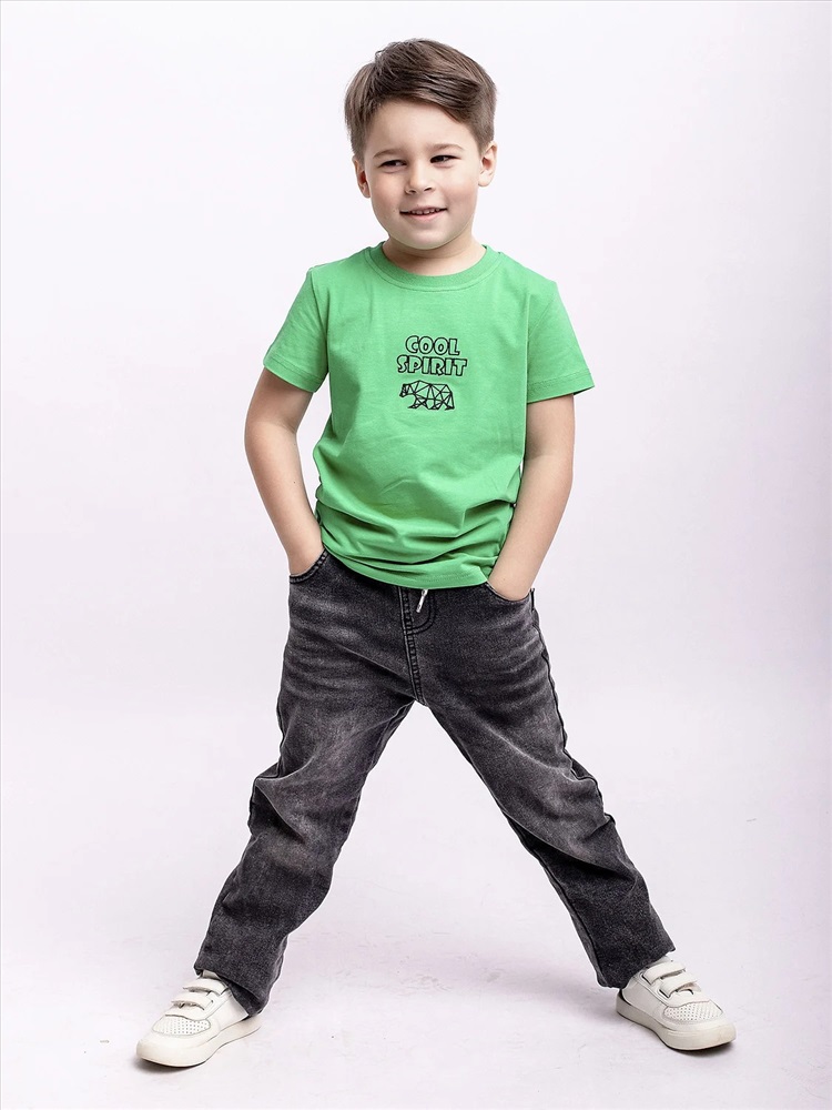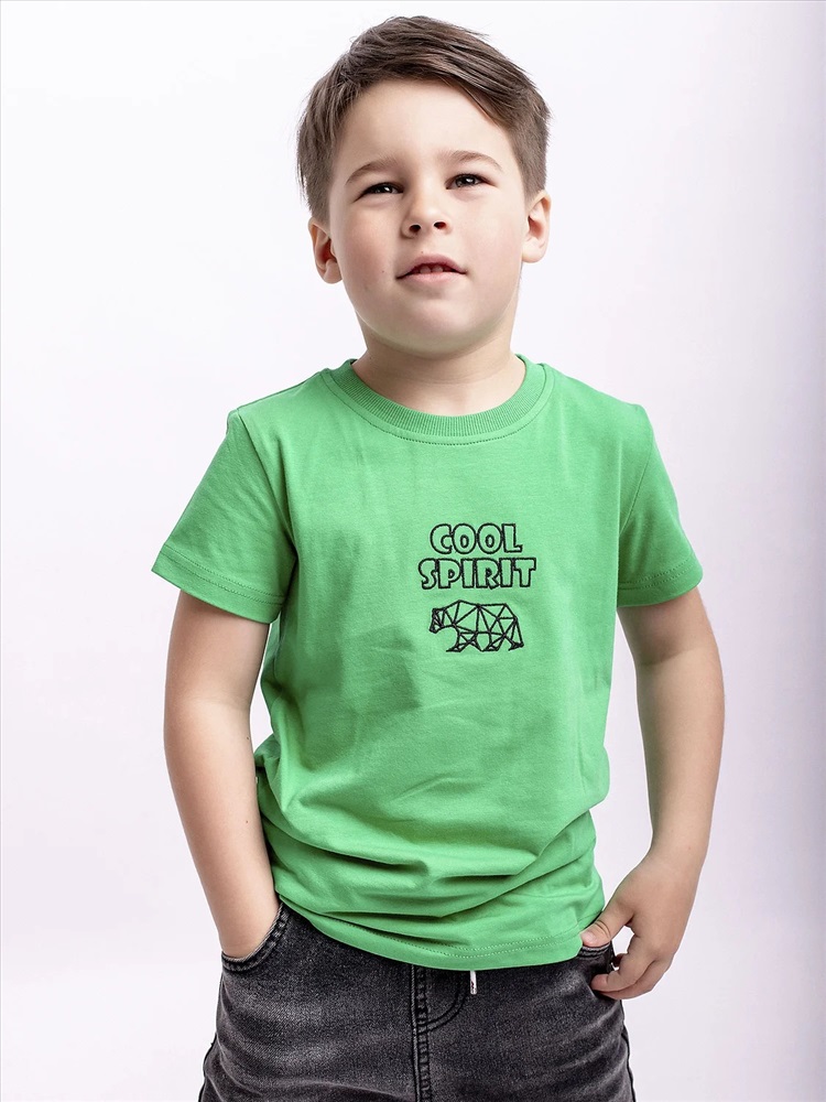 Футболка детская унисекс зеленая с коротким рукавом и вышивкой на груди.