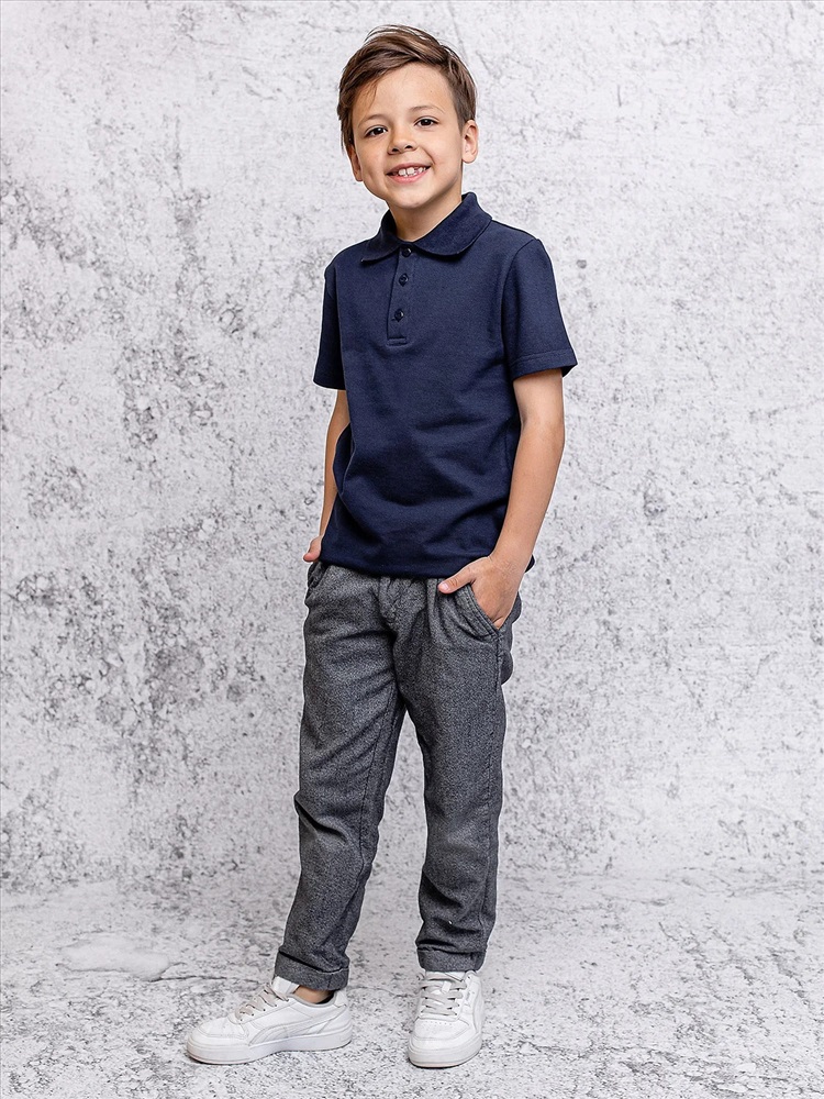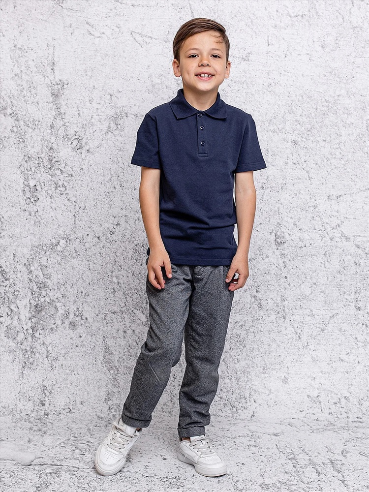 Футболка поло для мальчика короткий рукав синяя. Классическая футболка-поло для мальчика из 100% хлопкового пике. Стильное поло – незаменимая часть современной школьной формы для мальчика: оно прекрасно сочетается с брюками и не мнется под пиджаком.