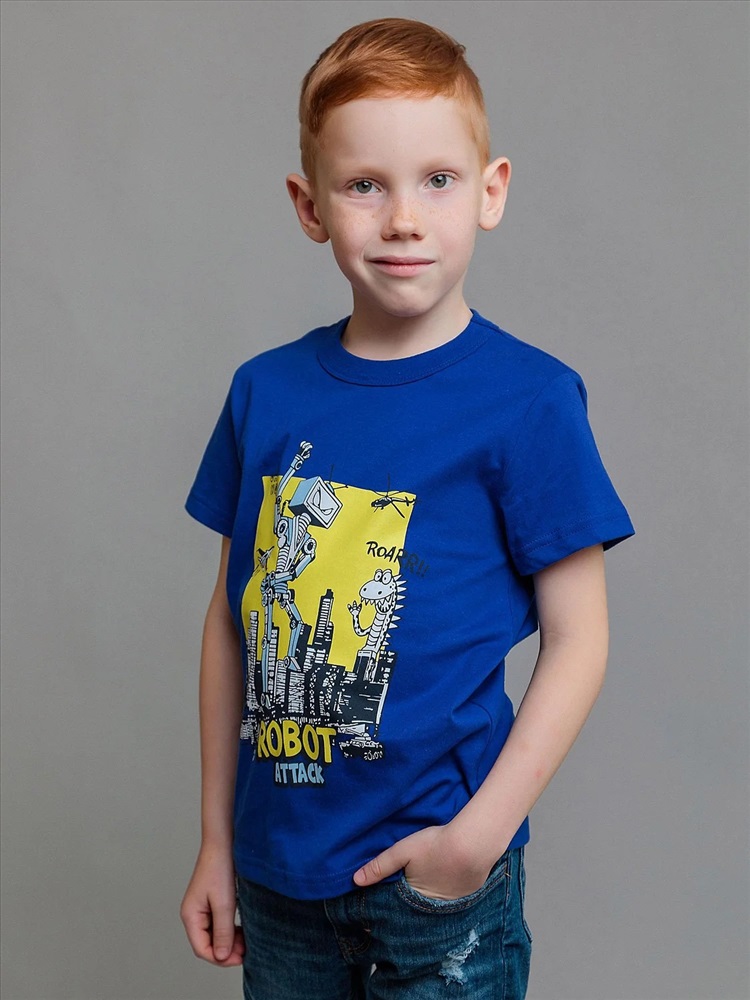 Футболка с коротким рукавом для мальчика синяя из натурального хлопка. Футболка детская с ярким принтом от бренда batik. Повседневная футболка для детей и подростков идеально подходит для похода в садик, школу, для занятий физкультурой и спортом, а также в качестве универсальной домашней или пляжной одежды.