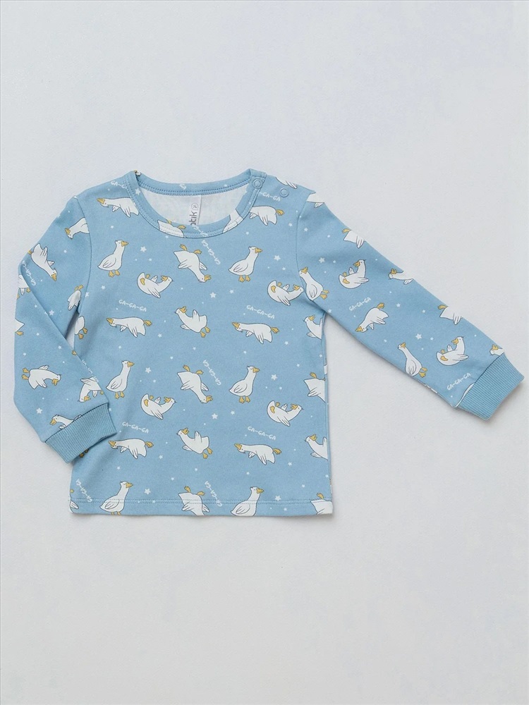 Кофточка с длинным рукавом для новорожденного мальчика. Милая кофточка голубого цвета с принтом в виде гусей. Круглая горловина на кнопках. Уютныая кофточка из натурального хлопка для малышей. Станет отличным дополнением к гардеробу ребенка до 2 лет и подарит ему тепло и комфорт.