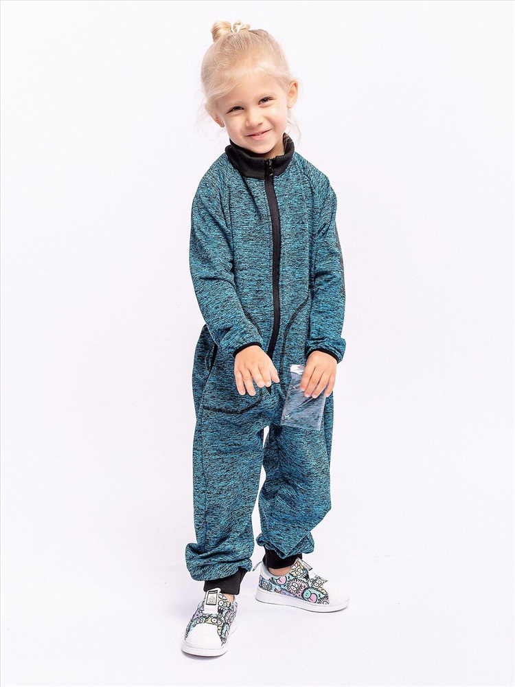 Комфортный флисовый комбинезон-поддева Найт голубой для детей. Ткань хорошо дышит и при этом сохраняет тепло. Манжеты рукавов и низ брюк на манжетах, спереди центральная молния, карманы и фирменный логотип.