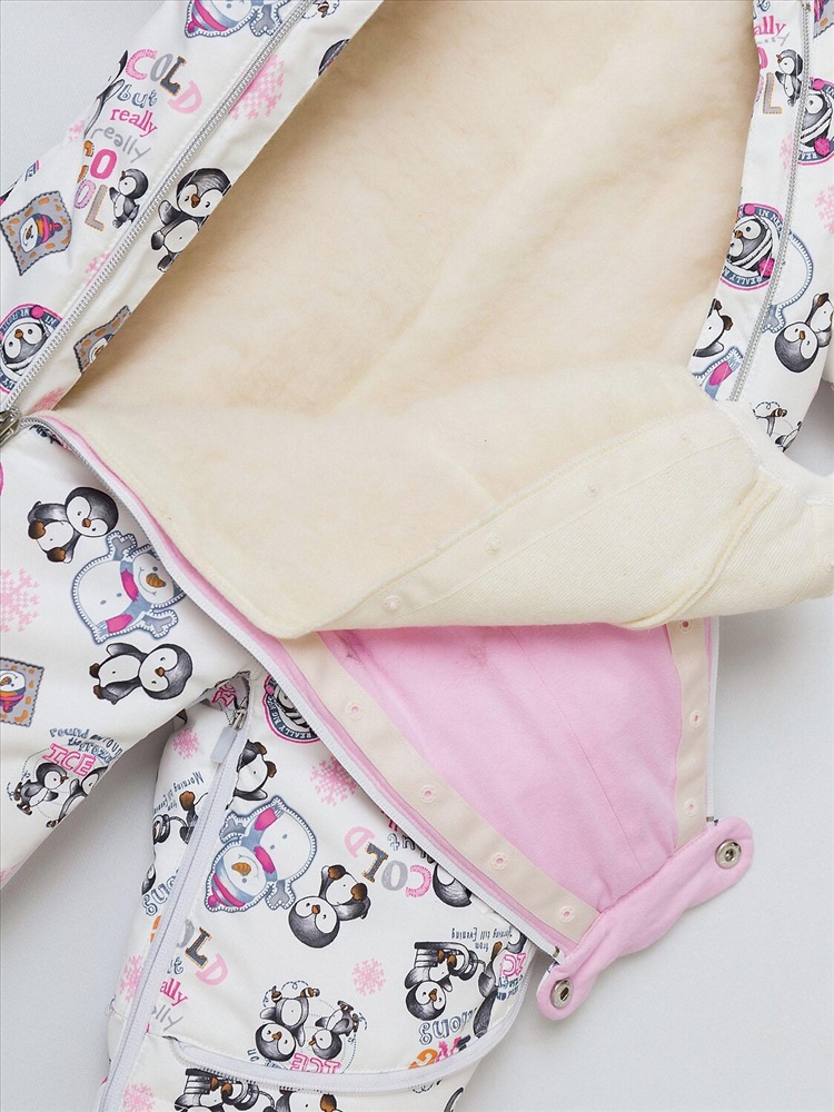 Комбинезон-трансформер "Парис" с очаровательным розовым принтом "Пингвины" создаст праздничное настроение первой зимой. Веселый рисунок поднимет настроение в холодные дни, а продуманная конструкция обеспечит надежную защиту.