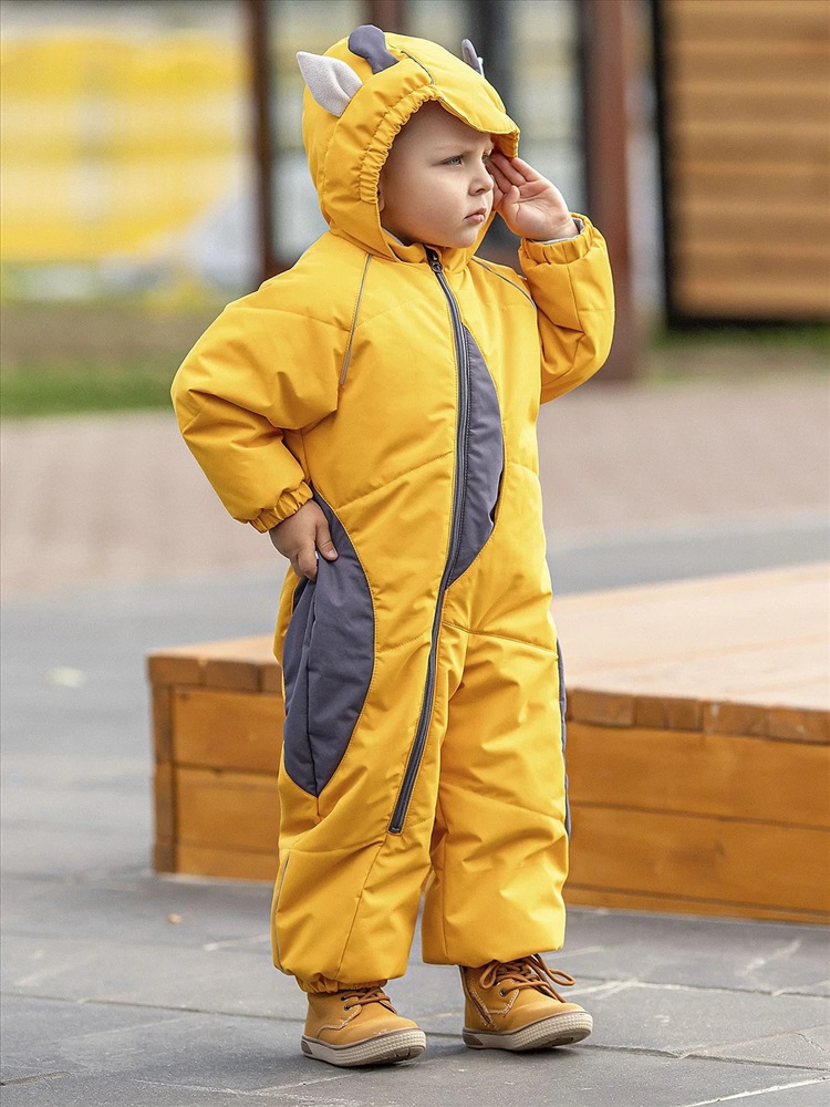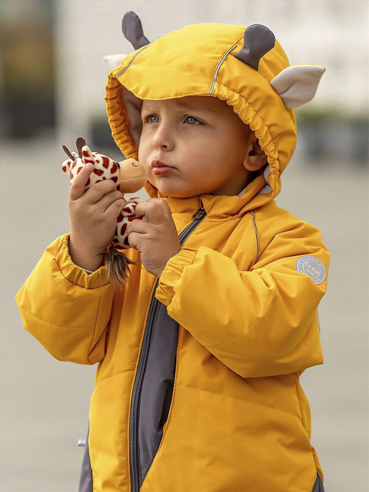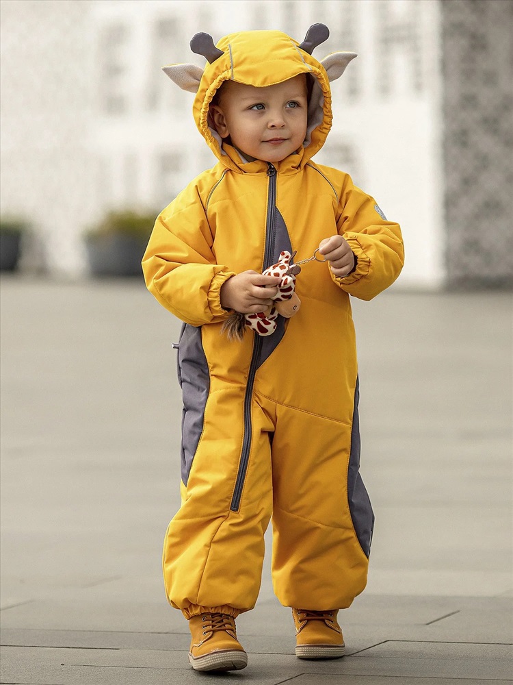 Комбинезон-трансформер Жирафик желтый из мембраны для детей 1,5-2 лет. Демисезонная модель с декоративной стежкой под жирафа.