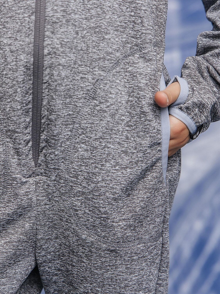 Флисовый комбинезон Макси серый из двухслойного трикотажа на молнии. Стильный комбинезон из флиса можно носить в качестве поддевы зимой и в межсезонье. Флис сохраняет тепло и отводит влагу от тела, оставляя кожу ребенка сухой. Застежка на молнию спереди. Воротник-стойка хорошо защищает горло от ветра. Рукава с манжетами, которые надеваются на руку. Полностью гипоаллергенная ткань. Низ на эластичной резинке. Есть карманы по бокам.