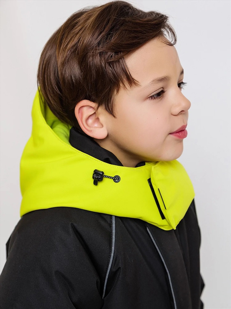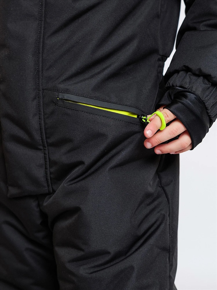Комбинезон для мальчика Аргон зима черный имеет водоотталкивающую пропитку DWR, которая защищает от влаги и ветра. Тёплый подклад из флиса позволяет при активной деятельности ребенка отводить влагу наружу, а значит - оставаться длительное время на улице. Бретели "свободные руки" позволят в тёплых местах снять верх комбинезона, чтобы ребёнку не было жарко. Манжеты из лайкры с кроем под пальчик согреют руки. Низ штанин усилен кордурой, что даёт высокую устойчивость к истиранию и проникновению влаги. Втачной регулируемый капюшон, резинка на рукавах, утяжка талии, высокий тёплый воротник, глубокие карманы на молнии, светоотражающие элементы делают этот комбинезон эргономичным, удобным и комфортным.