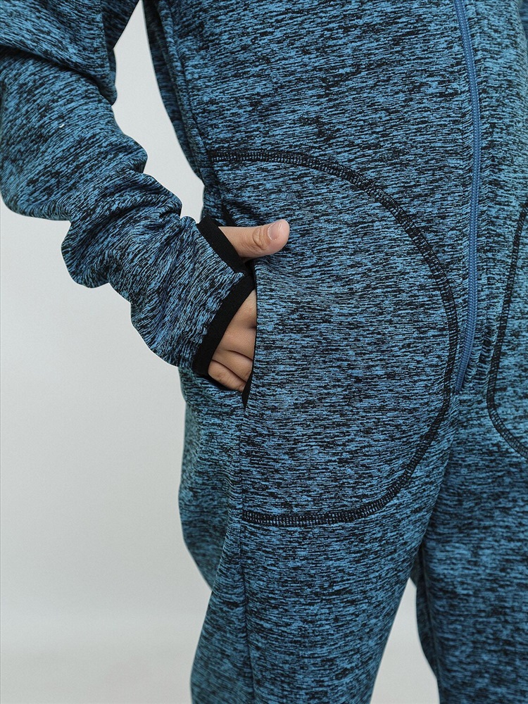 Флисовый комбинезон голубого цвета на трикотажной основе детский Рэми. Неутепленная модель на молнии, с высоким воротником из плотного трикотажного хлопкового материала. Универсальный комбинезон для мальчика и для девочки можно носить в любое время года, как в качестве самостоятельного предмета одежды, так и в качестве поддевы.