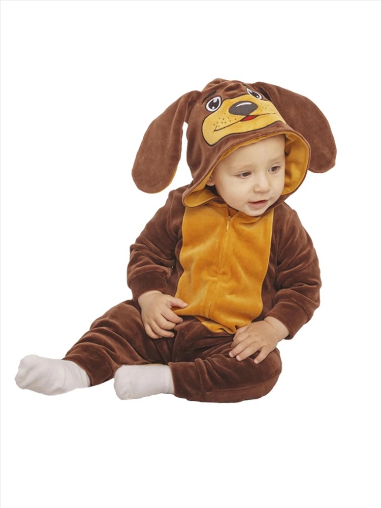Комбинезон детский Собака — тёплый и уютный комбинезон с капюшоном, украшенным забавными ушками и мордочкой собачки. Модель выполнена из мягкого материала, приятного к телу, и оснащена удобной застёжкой спереди. Эластичные манжеты на рукавах и штанинах обеспечивают комфорт и удобную посадку. Отличный выбор для дома, сна или активных игр.