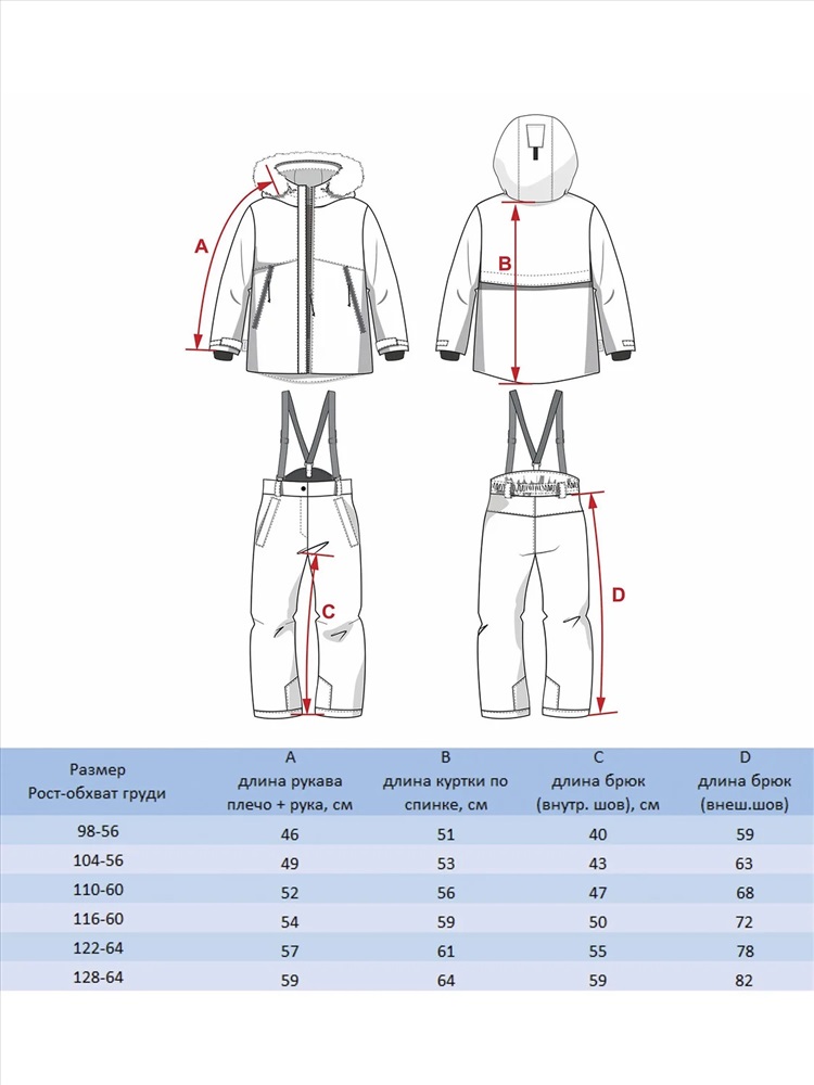 * Утеплитель: куртка-300 г/м², п/к - 150 гр/м²