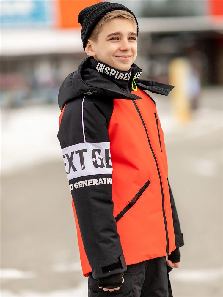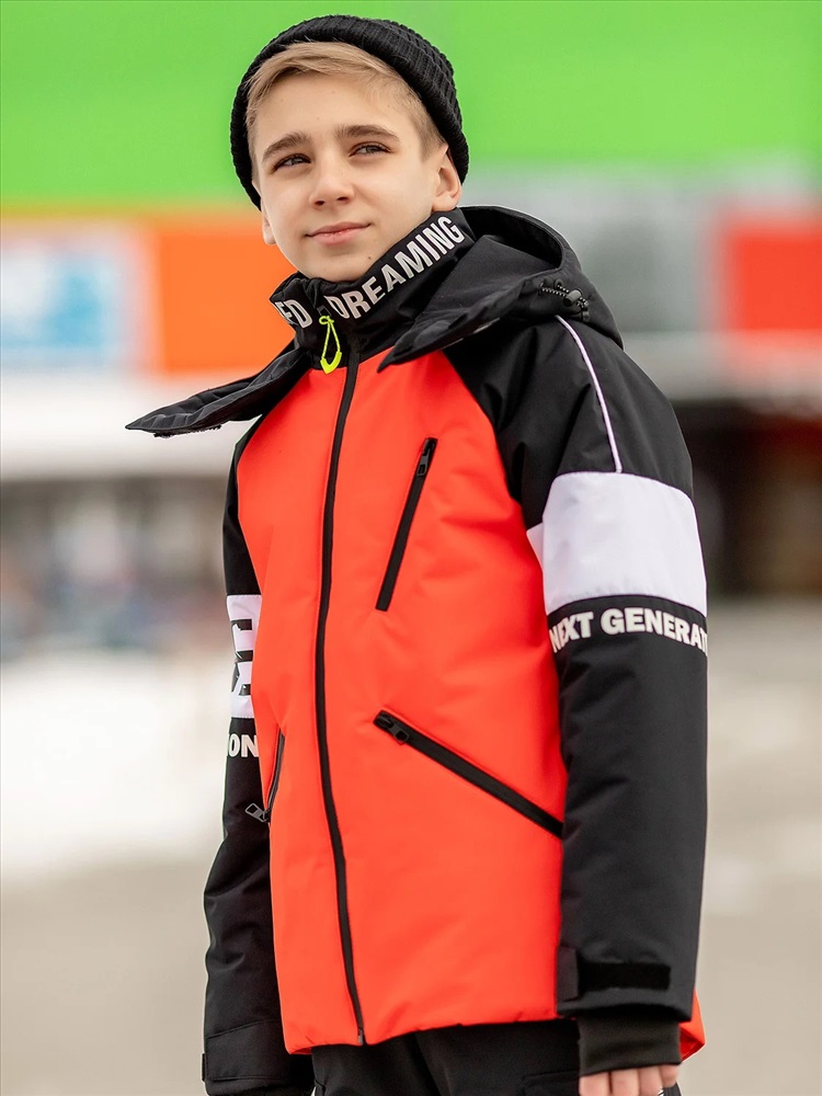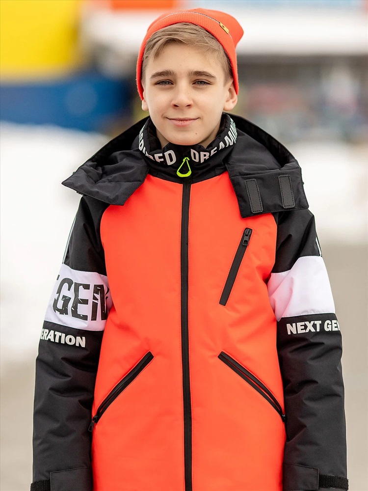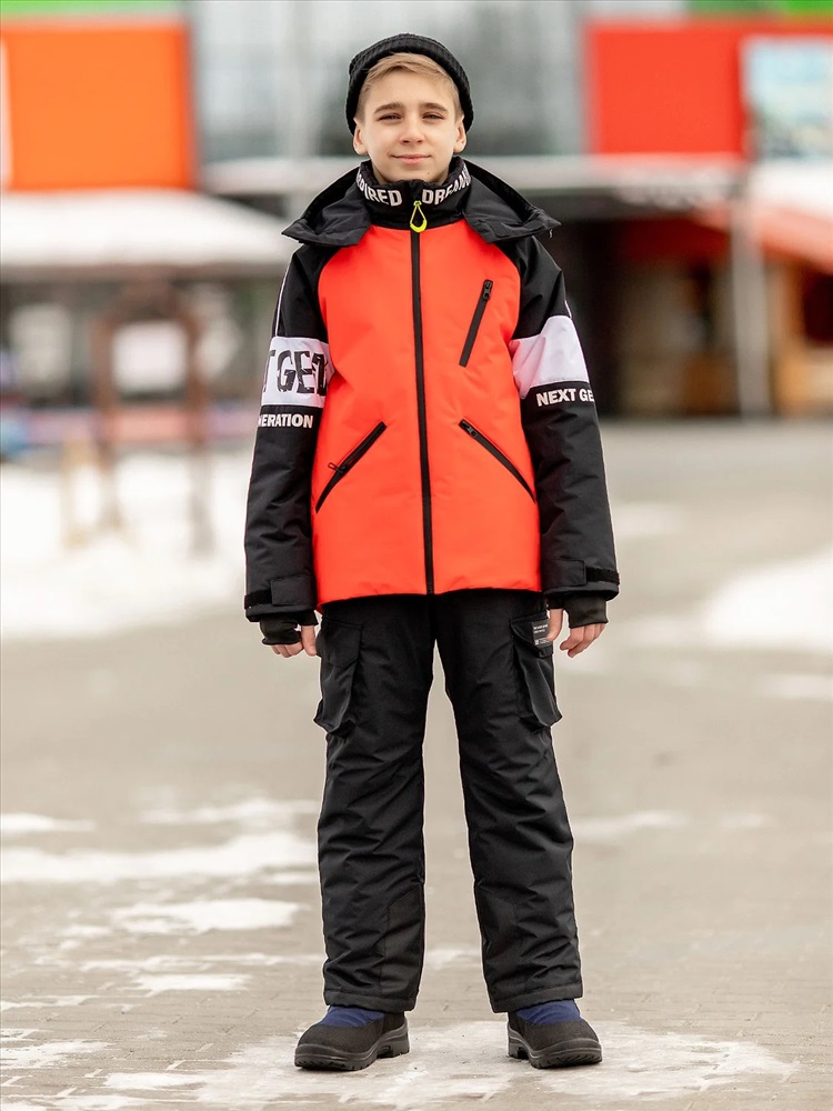 Комплект для мальчика Анри в желто-неоновой расцветке с принтом. Куртка с камуфляжным принтом и яркими неоновыми кантами, вставками и навесами с черным однотоном. Центральная двухзамковая водонепроницаемая молния, а также три прорезных кармана на молниях. Воротник и рукава декорированы термотрансферами. По низу рукавов имеется регулировка с помощью липучки и удобные эластичные манжеты с отверстием под палец. Внутри продуман карман на молнии, утяжка по низу куртки. Брюки имеют эргономичный крой, накладные карманы с клапанами и голографической нашивкой, а также снегозащитные манжеты.