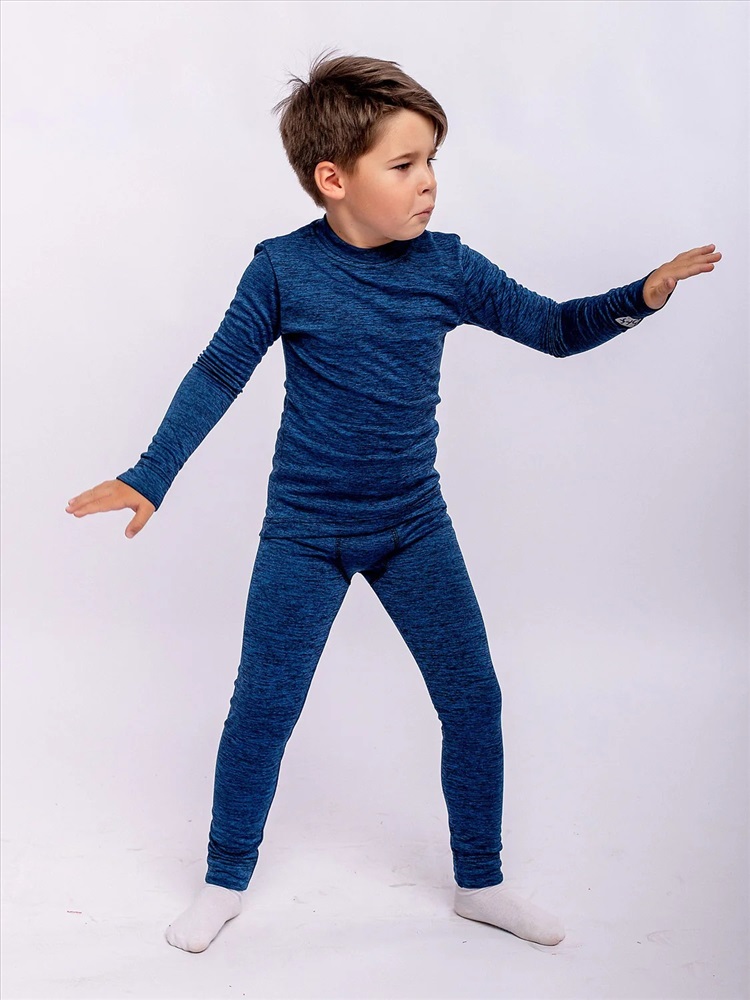 Комплект базового термобелья синий: пуловер и брюки. Двухслойный трикотаж поможет сохранить тепло и подарит комфорт в любую погоду. Можно носить в качестве поддевы зимой.