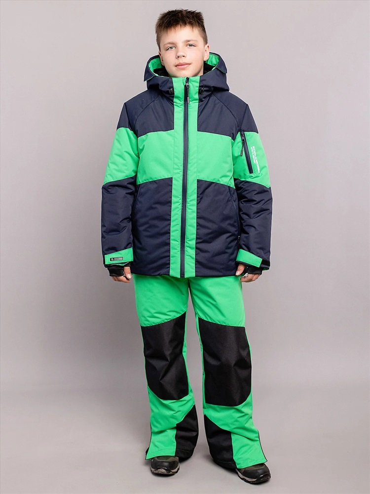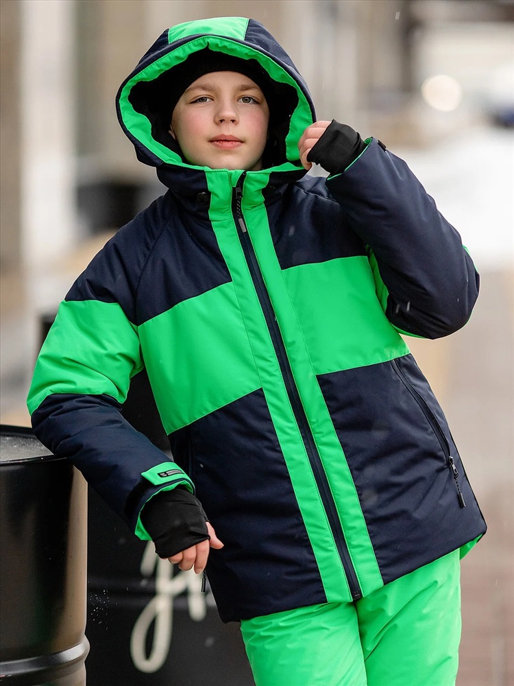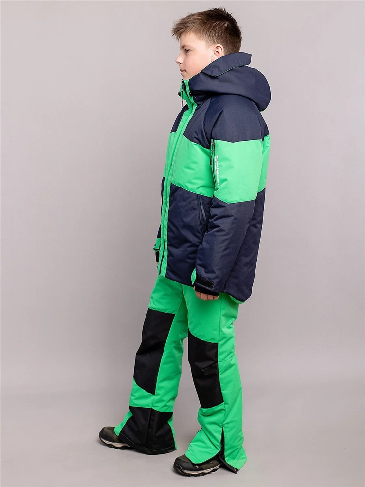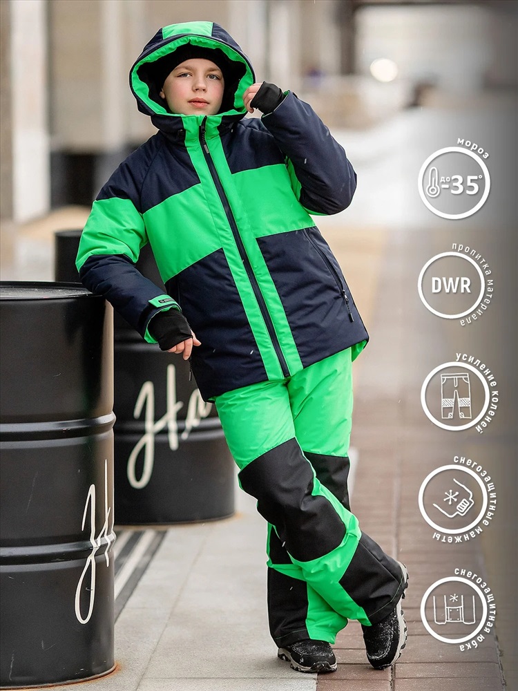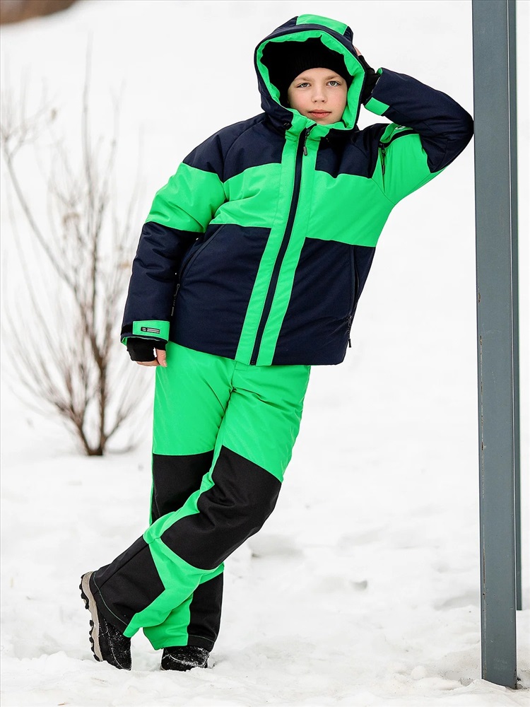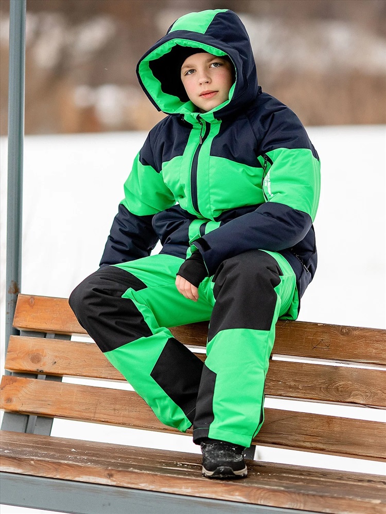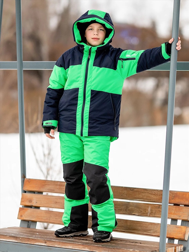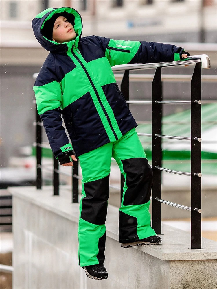 Яркий комплект Найс в спортивном стиле для мальчиков. Куртка выполнена из мембранной ткани с водоотталкивающей DWR пропиткой, рукава кроя реглан не сковывают движения, объем регулируются патами на липучках. Капюшон с козырьком и утяжками. Брюки со съемными лямками для регулировки длины, усилением коленей и шаговых швов. Капюшон глубокий несъемный, высокий воротник. Карманы по бокам и на рукаве на молниях. Низ рукавов на липучках.