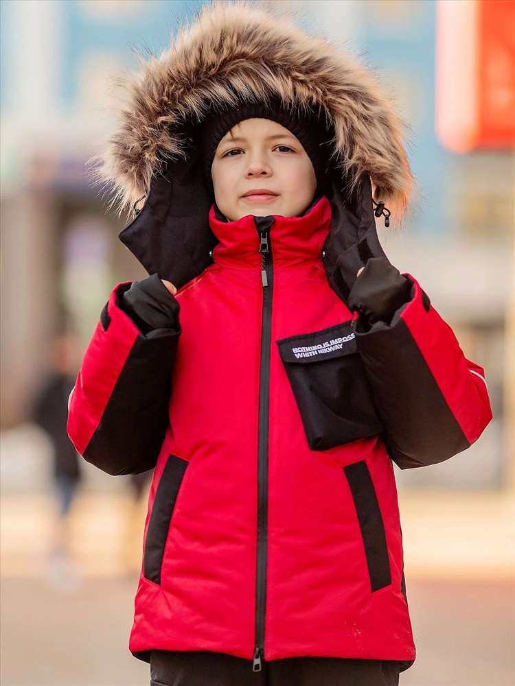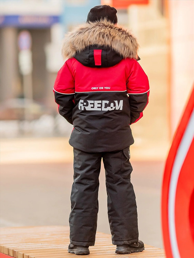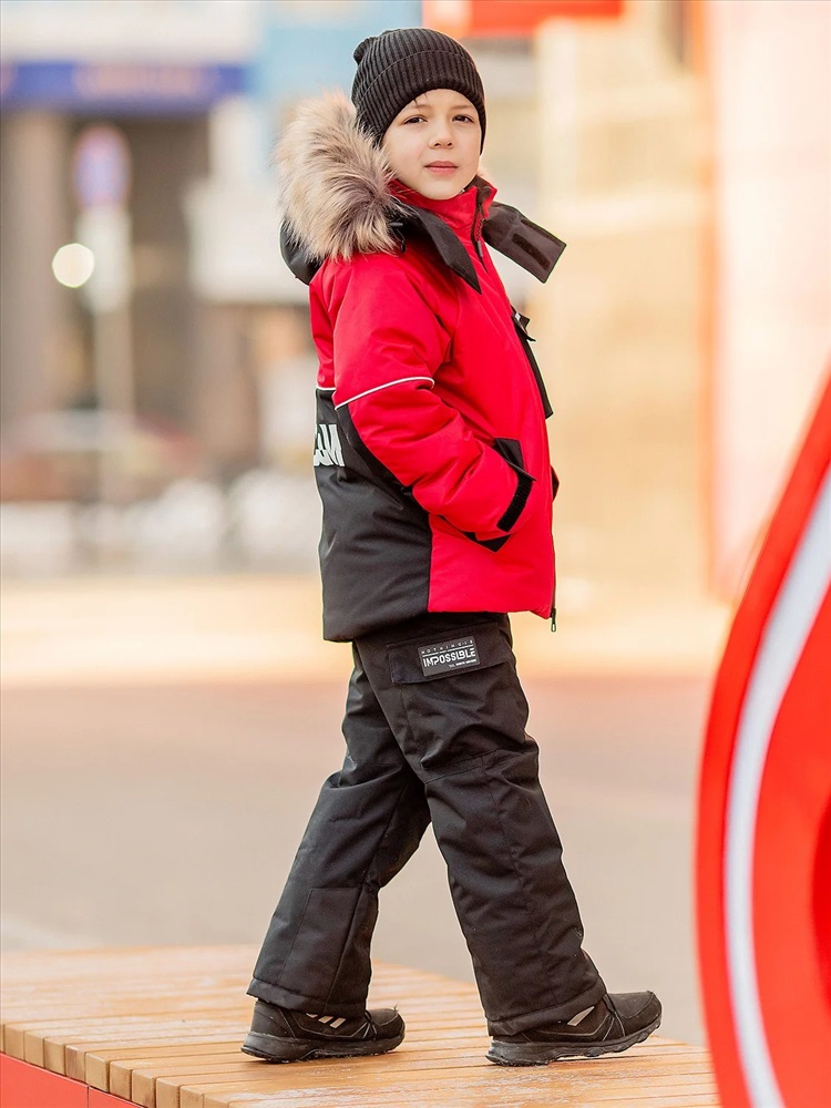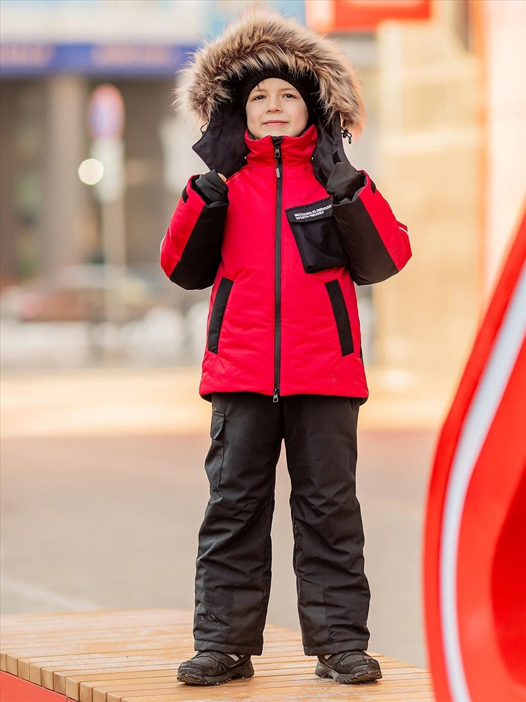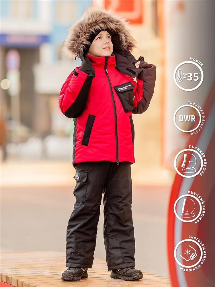 Комплект для мальчика Влад красный утепленный из новой коллекции Зима 2023/2024: куртка и полукомбинезон. Приятная на ощупь флисовая подкладка и мембрана обеспечивают комфорт и тепло даже в мороз. Зимняя куртка имеет три кармана: на груди накладной, внутренний и боковые. Капюшон съемный на кнопках с застежкой на липучки. Снегозащитная юбка защитит поясницу от переохлаждения и будет препятствовать попаданию снега внутрь. Манжеты рукавов на резинке для надежной фиксации и защиты от попадания снега. Полукомбинезон с застежкой на молнию и накладными карманами.