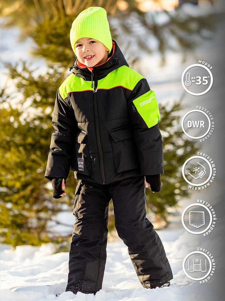Комплект для мальчика Торн утепленный зимний в черной расцветке из мембраны и флисовым подкладом. Состоит из куртки и полукомбинезона. Водо- и ветронепроницаемая мембрана. Не промокает даже при сильной влаге, но при этом дышит. Утеплитель изготовлен по новейшим технологиям, удерживает тепло при температуре до -35 С. Очень мягкий, создающий объем для сохранения тепла, более плотный в куртке и менее плотный в полукомбинезоне. Подклад - высокотехнологичный микрофлис. Боковые карманы в куртке и карман на рукавах. Трикотажные манжеты в рукавах. Карманы в полукомбинезоне.