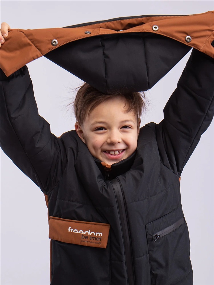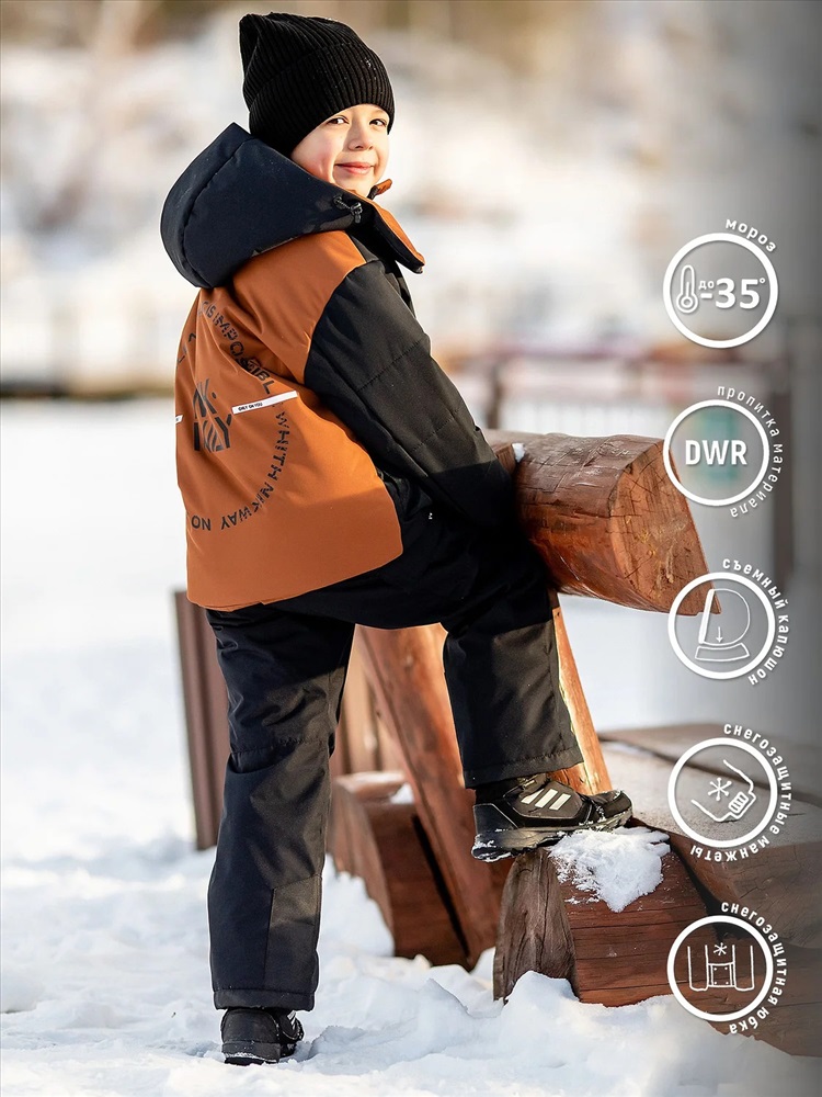 Комплект для мальчика Браун из новой коллекции от batik: утепленные куртка и полукомбинезон. Выполнен из качественной мембранной ткани с водо- и ветронепроницаемым, дышащим и грязеотталкивающим покрытием. Ткань мембрана. Подклад микрофлис - мягкий на ощупь, быстро согревает и удерживает тепло, не вызывает аллергических реакций. Расцветка медно-коричневая, на спинке термотрансферные надписи.