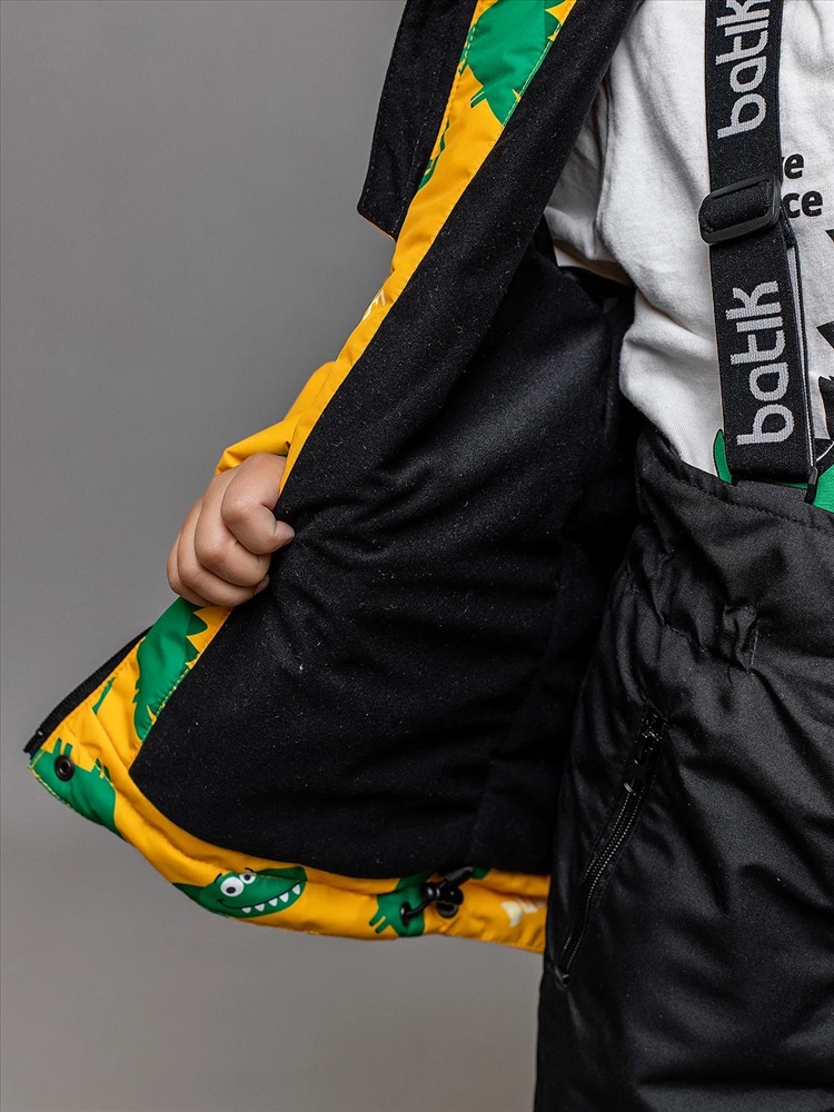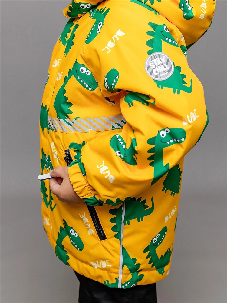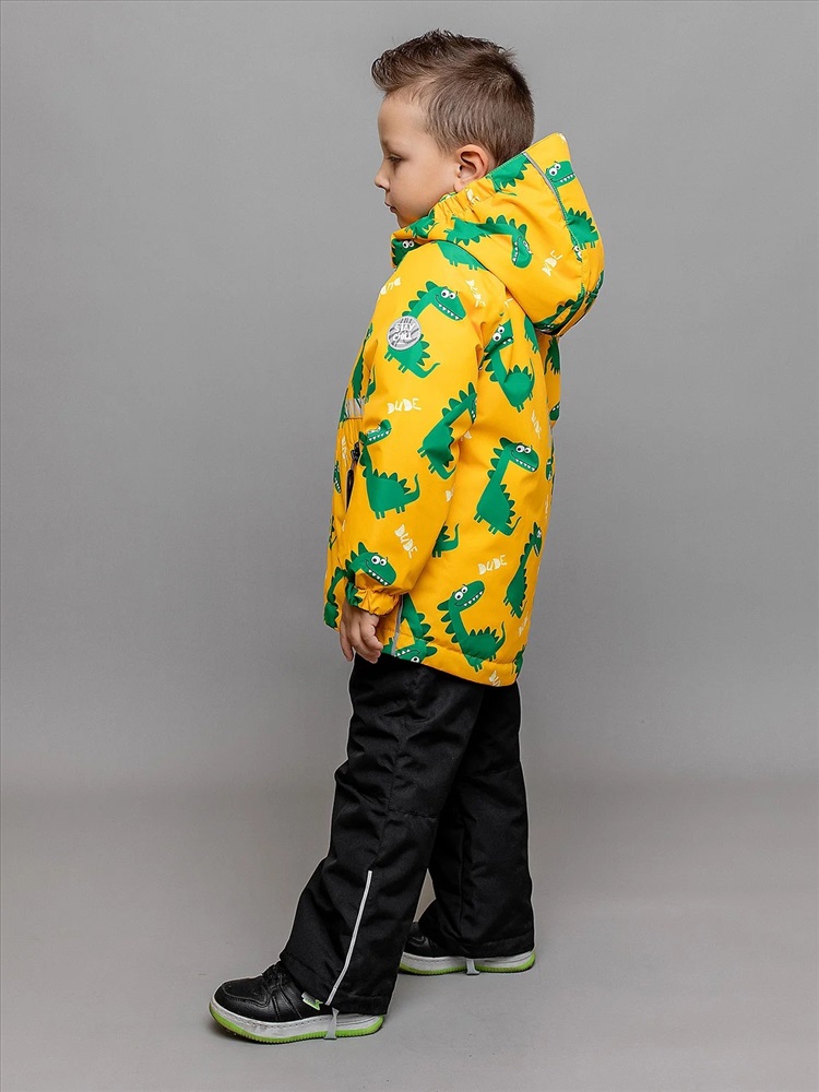 Комплект для мальчика Эрик демисезонный с ярким игривым принтом на куртке и полукомбинезоном в темном оттенке графит. Спереди прорезные карманы на молнии, ветрозащитная планка на центральной молнии и регулировка по низу. На полукомбинезоне регулируемые бретели и силиконовые штрипки. Карманы на молнии. Комплект выполнен из приятной на ощупь ткани с водоотталкивающей пропиткой, что делает его идеальным выбором на весну и осень. Дополнен светоотражающим декором.