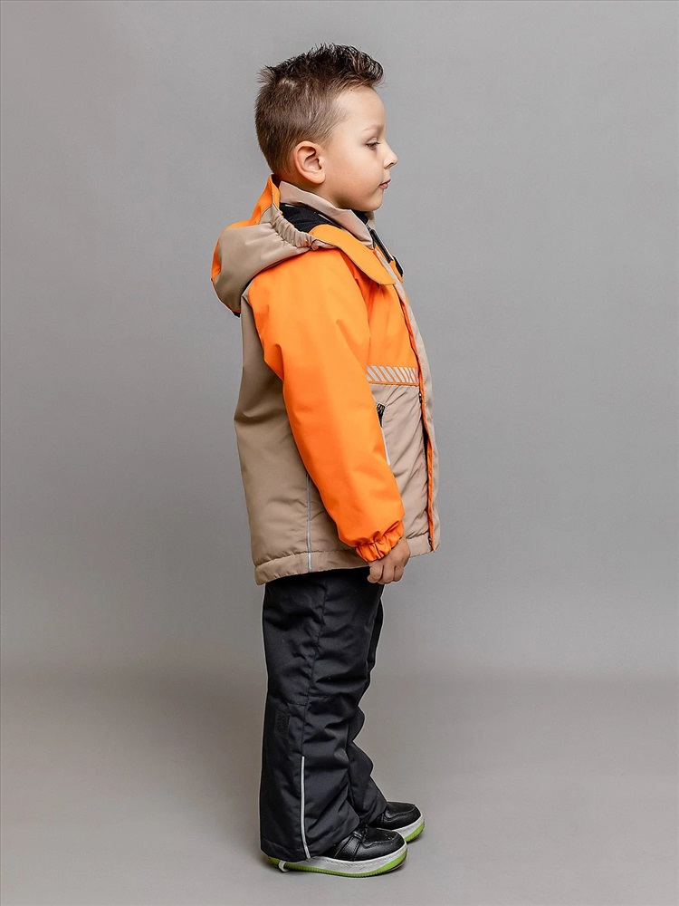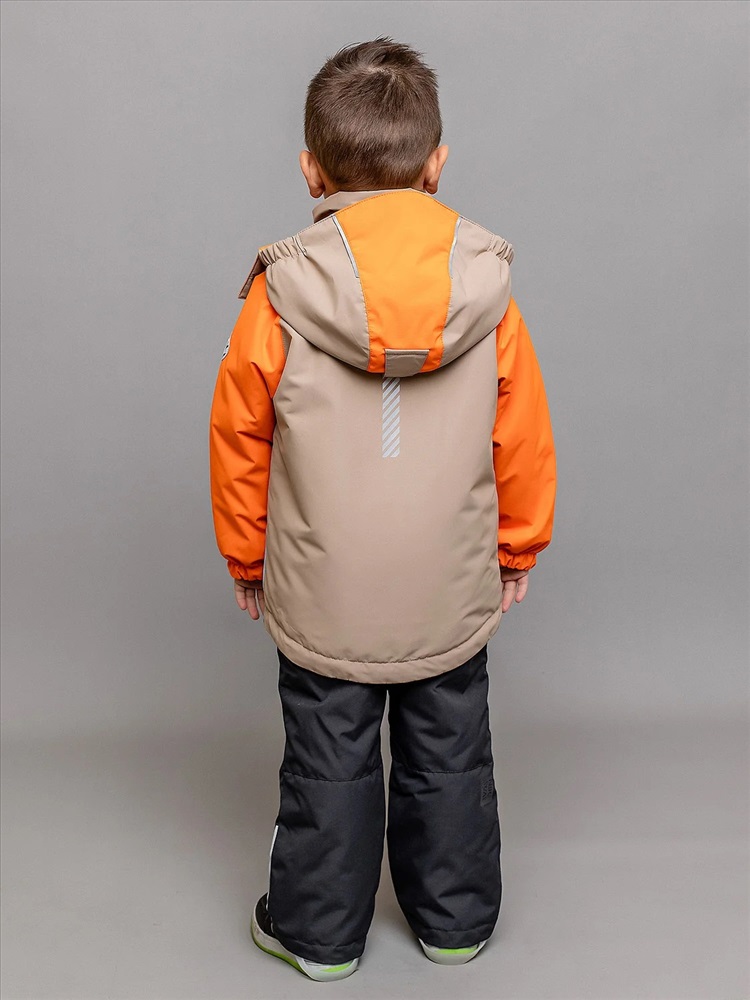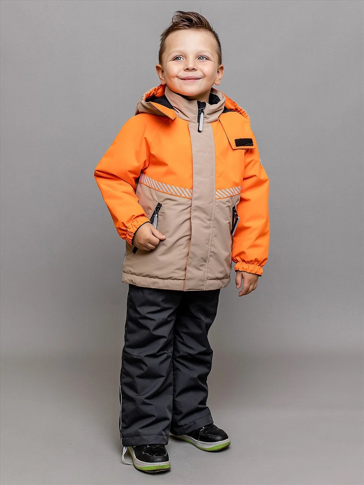 Комплект для мальчика Эрик демисезонный с курткой в яркой расцветке и полукомбинезоном в темном оттенке графит. Спереди прорезные карманы на молнии, ветрозащитная планка на центральной молнии и регулировка по низу. На полукомбинезоне регулируемые бретели и силиконовые штрипки. Карманы на молнии. Комплект выполнен из приятной на ощупь ткани с водоотталкивающей пропиткой, что делает его идеальным выбором на весну и осень. Дополнен светоотражающим декором.