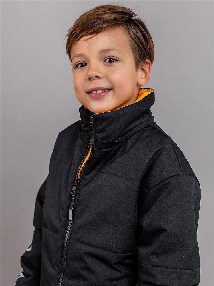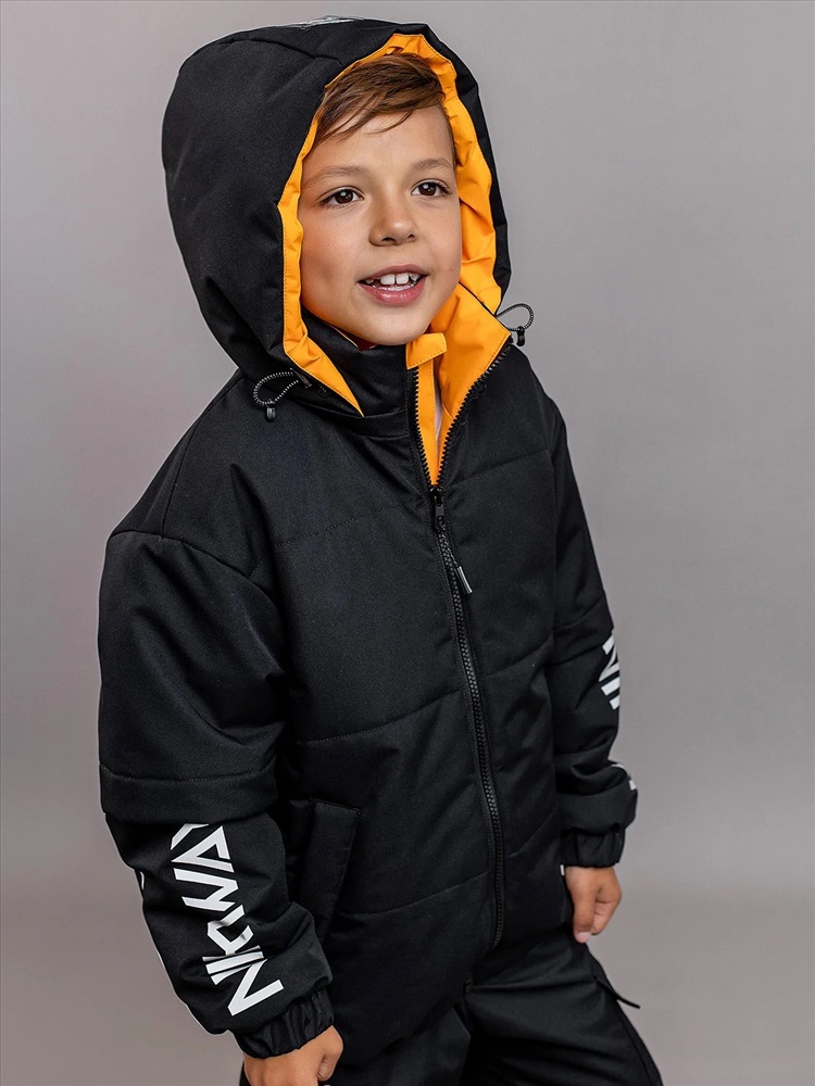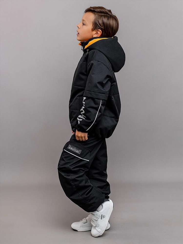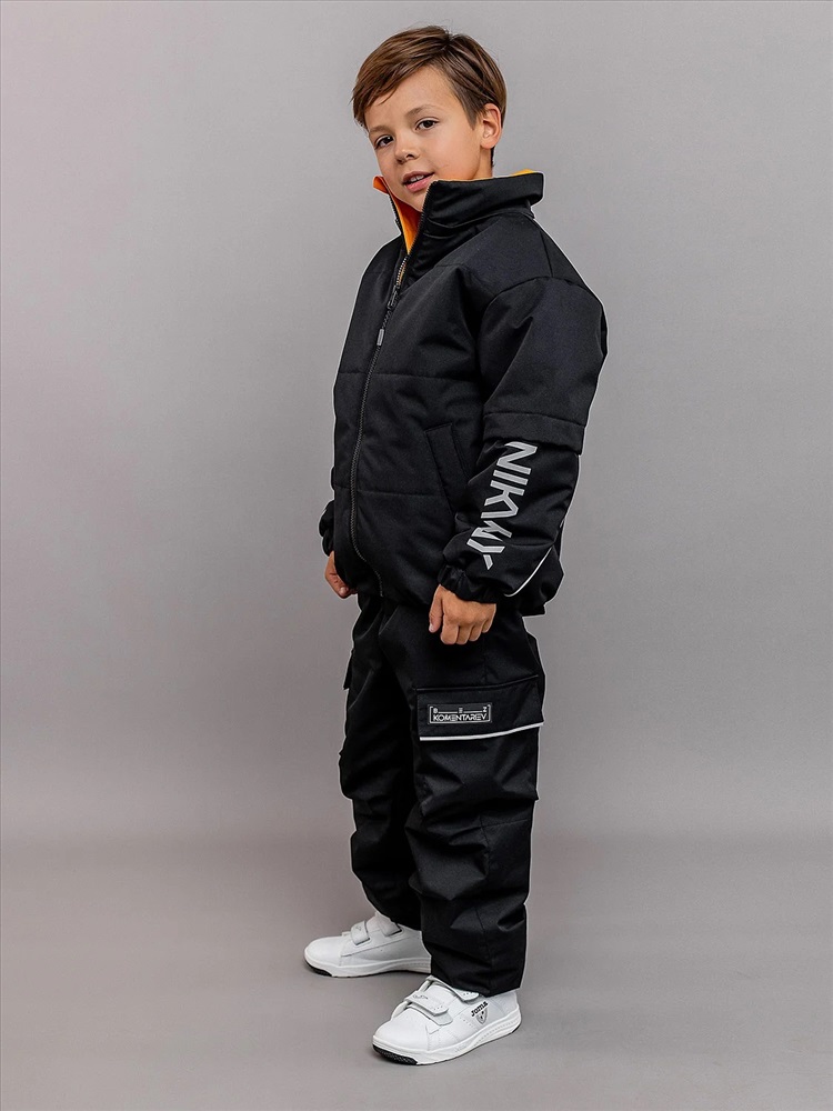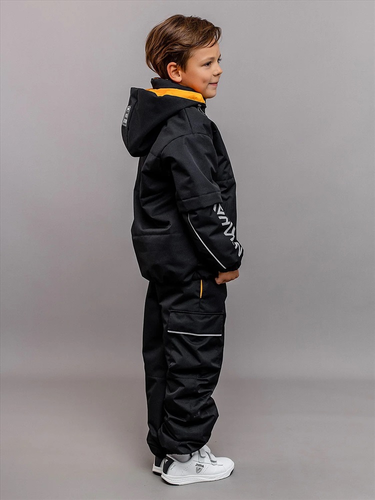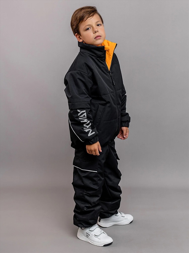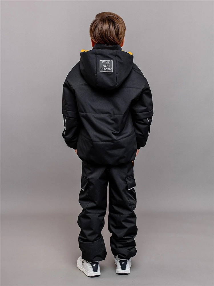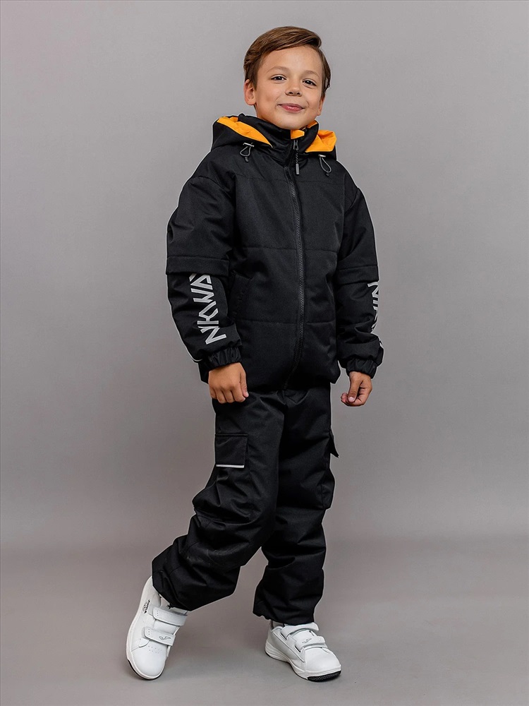 Комплект для мальчика Неон демисезонный из мембранной ткани с утеплителем. Куртка объёмная со спущенной линией проймы и утеплителем 100гр, брюки-джогеры без утеплителя с ворсовым трикотажем на подкладе. Анатомичный крой рукава - в локтевой шов заложена вытачка, повторяющая изгиб руки для комфорта. Центральная застёжка на молнию с внутренней ветрозащитной планкой и защитой от защипа подбородка. Яркие внутренние элементы. Воротник высокий объёмный, капюшон съёмный на кнопках. Низ рукава стянут манжетой с эластичной тесьмой. Низ куртки с регулируемой утяжкой шляпной резинкой. Брюки с регулируемыми съёмными бретелями и поясом из эластичной тесьмы. Брюки с карманами в швах с декоративными яркими мешковинами и двумя объёмными карманами по боковым швам. Светоотражающие элементы: кант в капюшоне, локтевых швах рукавов и внизу боковых швов брюк, светоотражающие термотрансферы на рукавах, на объёмном кармане брюк, навесы на молнии.