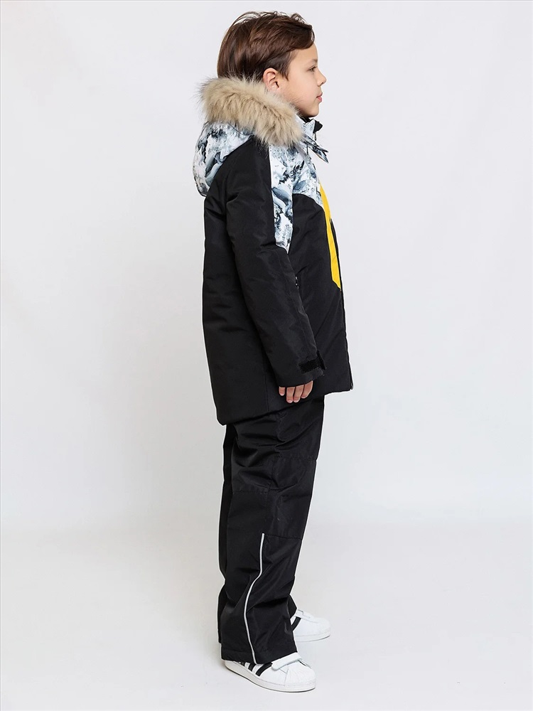 Комплект для мальчика Луи зима в черной расцветке с яркими стильными вставками. Выполнен из плотной, но достаточно мягкой ткани с мембранным покрытием, которое защищает от ветра и влаги. Тёплый подклад из флиса позволяет при активной деятельности ребенка отводить влагу наружу и оставаться длительное время на улице. Капюшон с регулировкой и съёмной опушкой на кнопках, регулируется по глубине и будет хорошо защищать от ветра и холода. Рукава регулируются по ширине, у молнии установлена внутренняя планка от задува и защита от защипа. Вместительные тёплые карманы на молнии. Светоотражающие элементы по принципу 360 градусов видимости обеспечат безопасность в темное время суток.