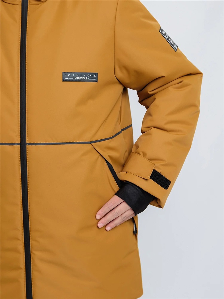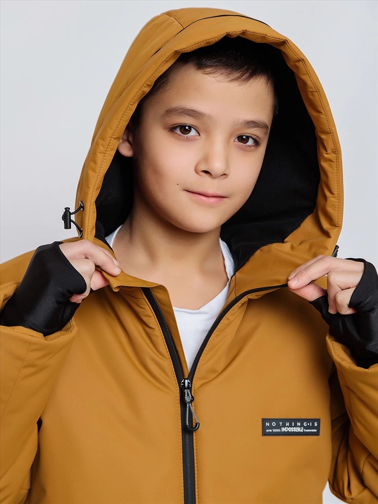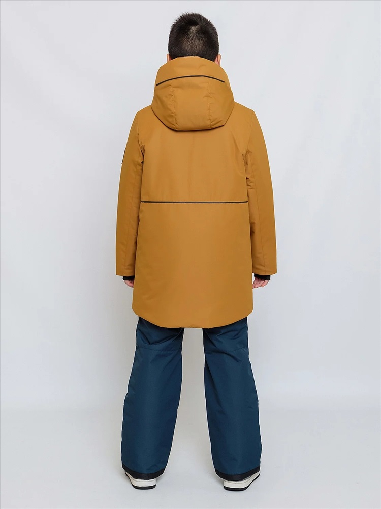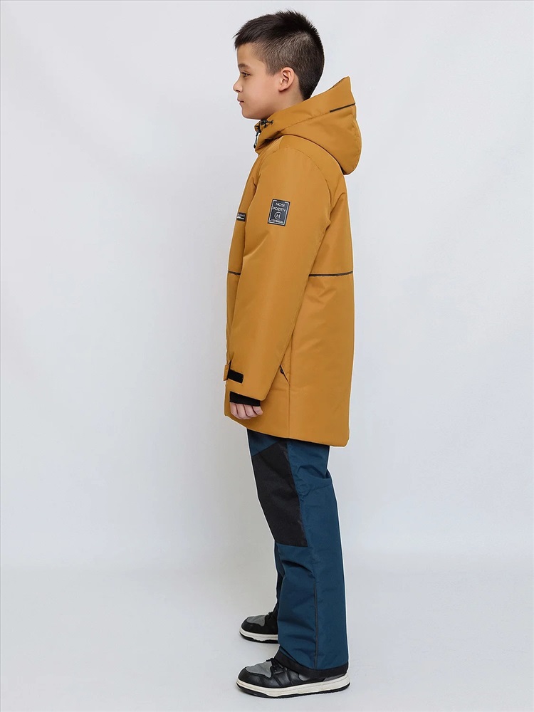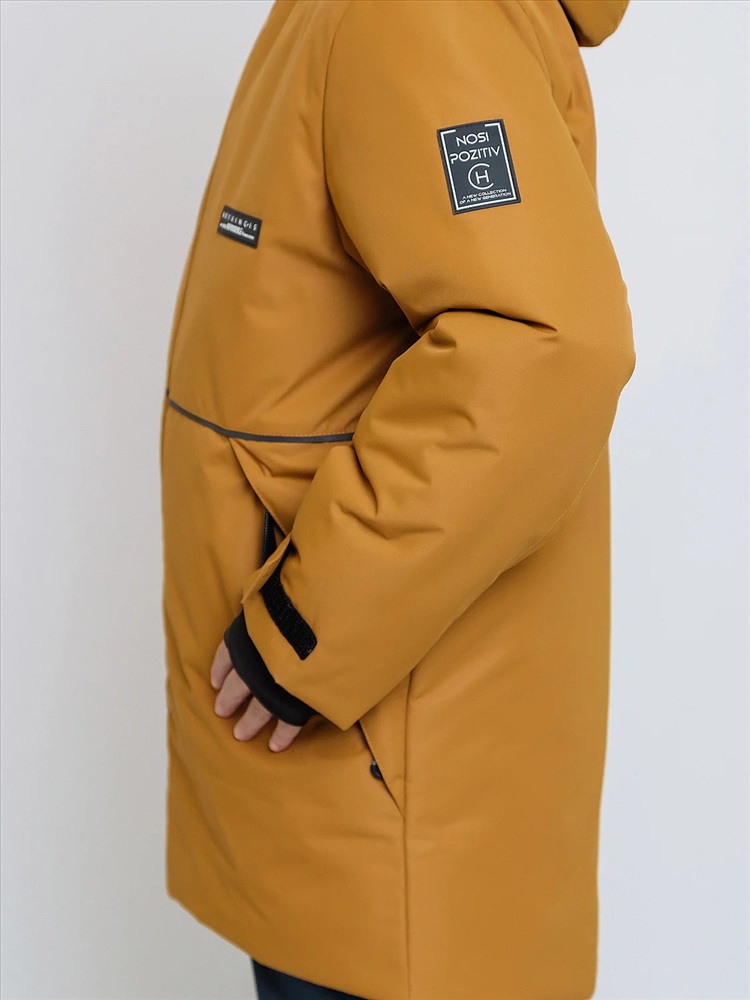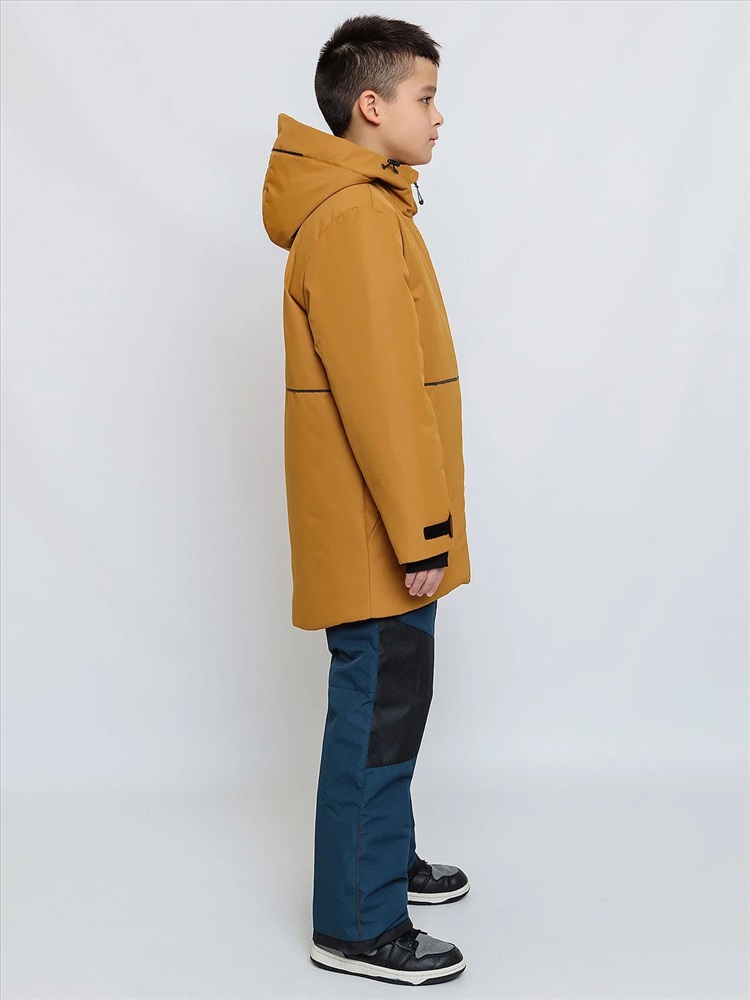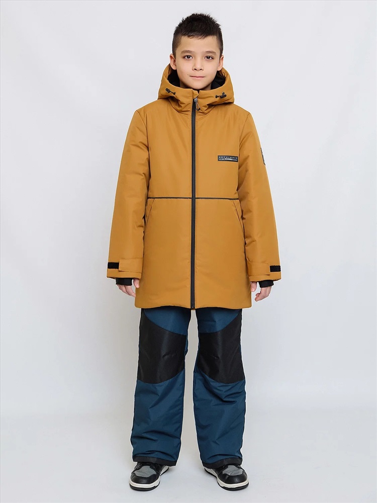 Комплект для мальчика Натан зимний в расцветке охра сочетает в себе городской и спортивный стили. Выполнен из плотной, но мягкой ткани с мембранным покрытием, которое защищает от холода и влаги. Удлинённая спинка, двойная ветрозащитная планка внутри и снаружи защищают от поддува. Тёплые большие карманы на мягкой подкладке согреют руки. Высокая обтачка низа рукавов и брючин позволят регулировать их длину. Трикотажные манжеты с прорезью под пальчик для дополнительного тепла и комфорта. Пояс брюк сзади с эластичной тесьмой, брюки с регулируемым съёмным ремнём, все открытые срезы предусматривают защиту от поддува за счет утяжек. Светоотражающие элементы по принципу 360 градусов видимости обеспечат безопасность в темное время суток.
