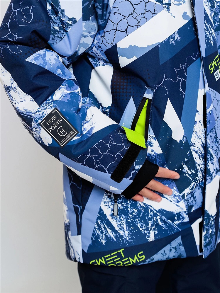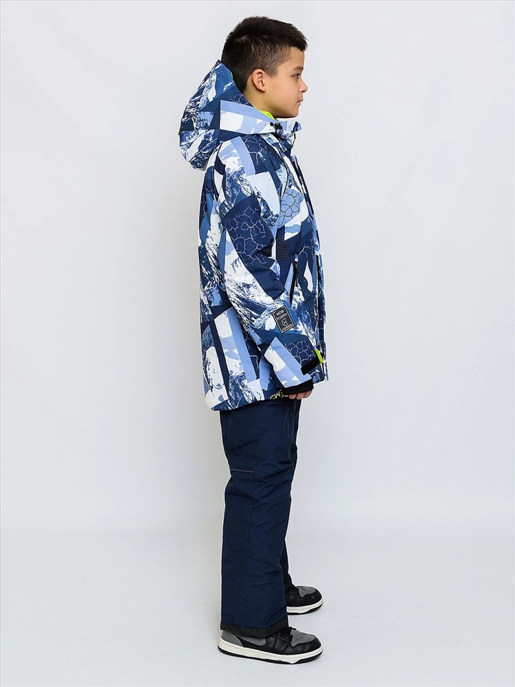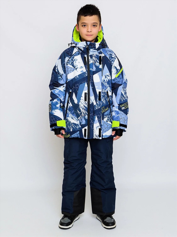 Яркий зимний комплект для мальчика Флоки в синей расцветке с принтом на куртке. Подклад полибрушед делает изделие очень тёплым и лёгким, хорошо защищающим от ветра и влаги. Рукав-реглан для свободного и комфортного движения, удлинённая спинка, двойная ветрозащитная планка внутри и снаружи. Несколько тёплых карманов куртки на кнопках, есть внутренний карман. Манжеты из лайкры с прорезью под пальчик для большего тепла. Высокий мягкий воротник защитит от холода и даст возможность в более тёплую погоду не надевать шарф. Рукава регулируются по ширине. Капюшон втачной с регулировкой по объему и глубине. Все открытые срезы предусматривают защиту от поддува за счет утяжек. У брюк съёмные бретели, пояс на резинке, эластичный съёмный ремень, карманы с подкроенным бочком плюс накладные карманы с клапанами на велькро. Светоотражающие элементы по принципу 360 градусов видимости обеспечат безопасность в темное время суток. Низ штанин усилен кордурой, что даёт высокую устойчивость к истиранию и проникновению влаги.