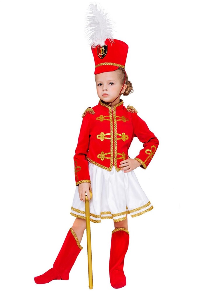 Костюм Мажоретки – относительно новый тренд в карнавальной моде. Карнавальный костюм Мажоретки будет отлично смотреться на многих праздниках, таких как Хэллоуин, Новый год. Также этот образ может понадобиться для спектаклей. В комплект костюма входит мундир, юбка, кивер, сапожки и трость.