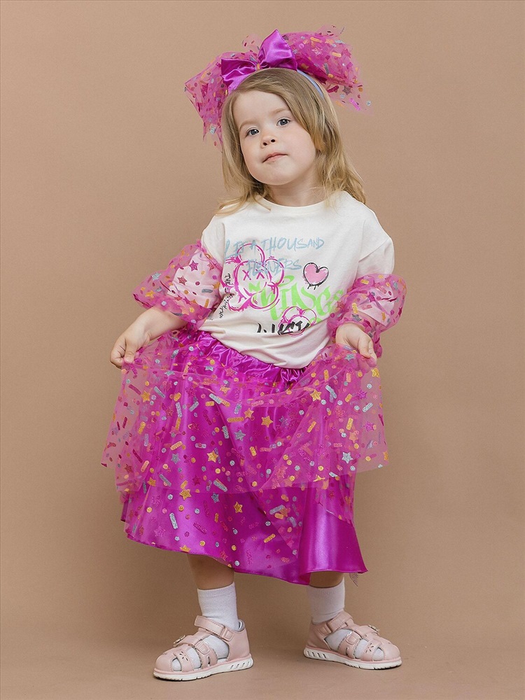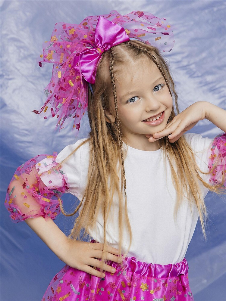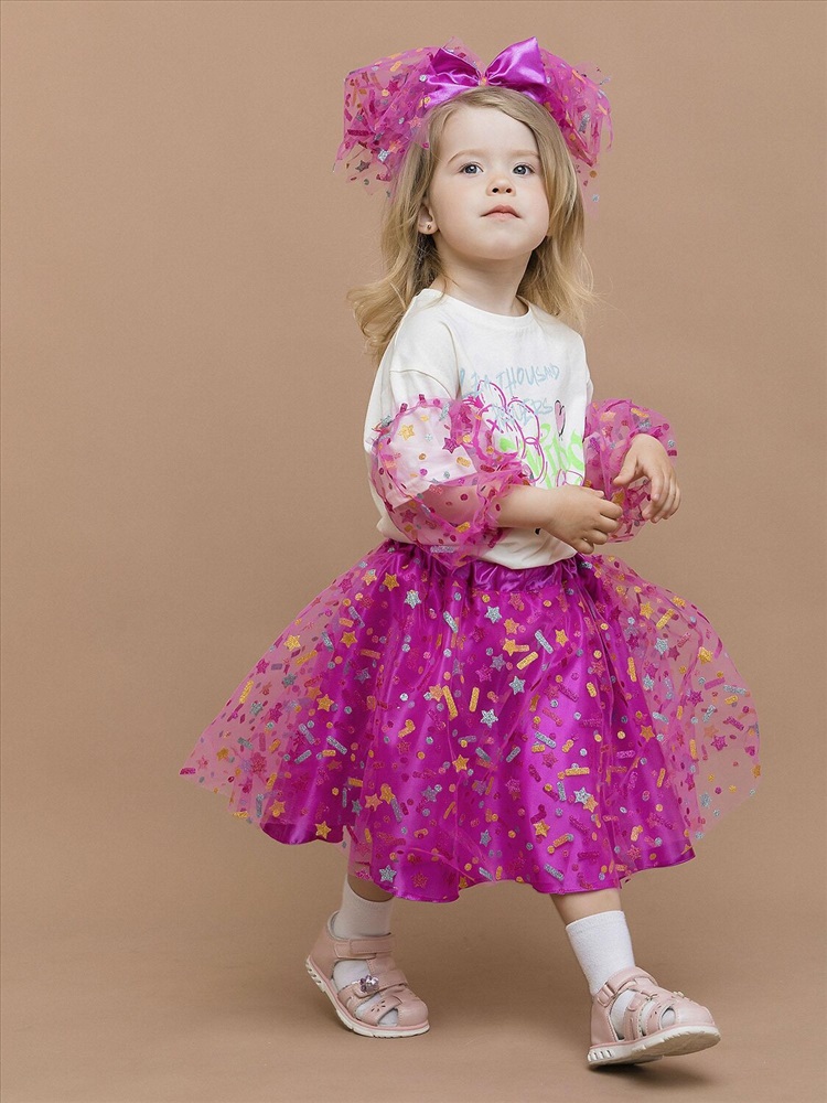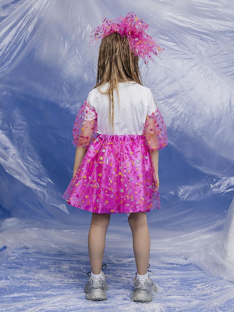 Карнавальный костюм Хлопушка – взрыв ярких эмоций и праздничного настроения. В комплекте: пышная юбка, съемные рукава на резинках, яркий ободок с бантом. Съемные элементы позволяют дополнять образ по настроению. Приятные к телу материалы позволяют свободно двигаться и танцевать.