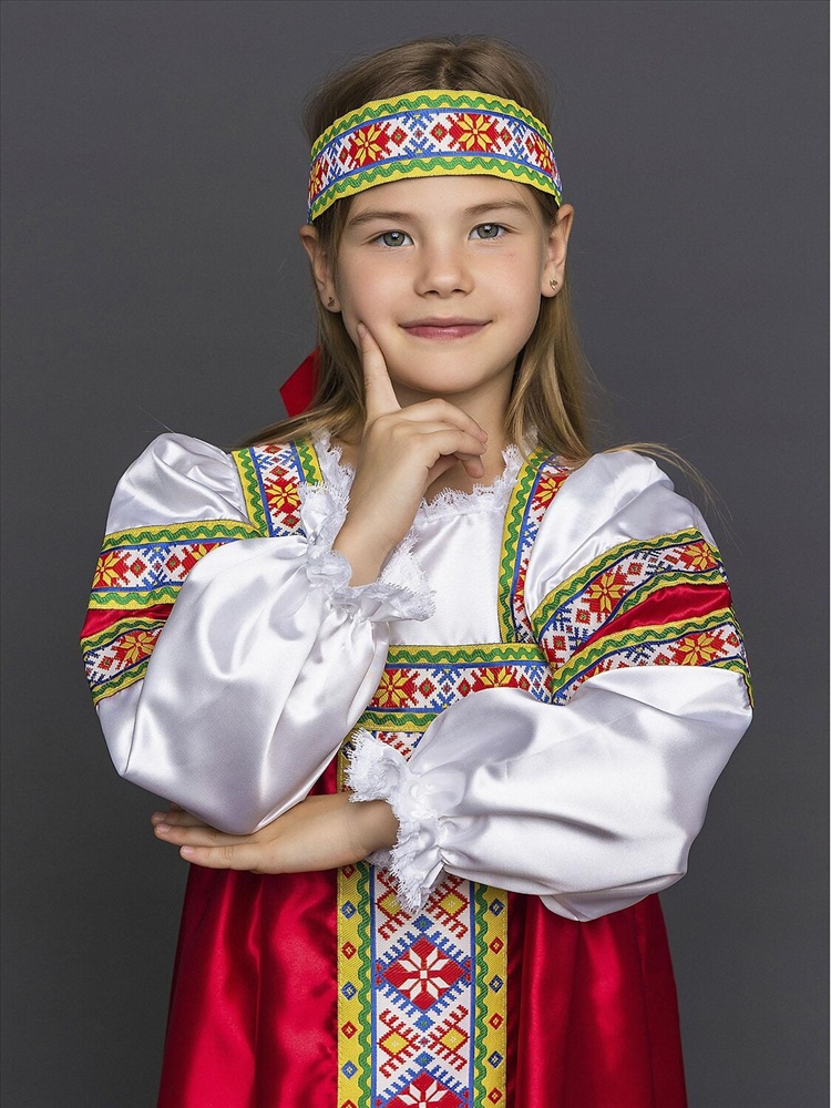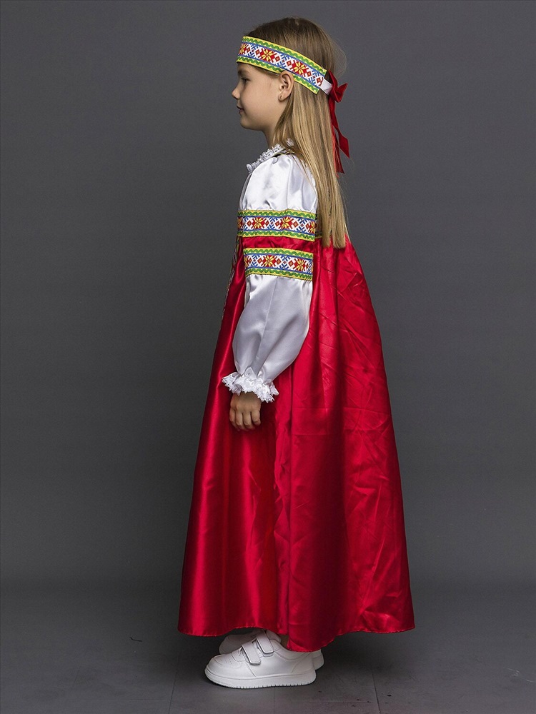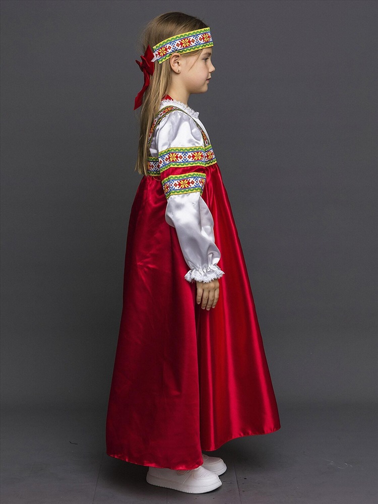 Чудесный красный сарафан с орнаментом и повязка на голову создают неповторимый образ для выступлений, спектаклей и карнавала. Все взгляды будут прикованы к красавице Марьюшке!