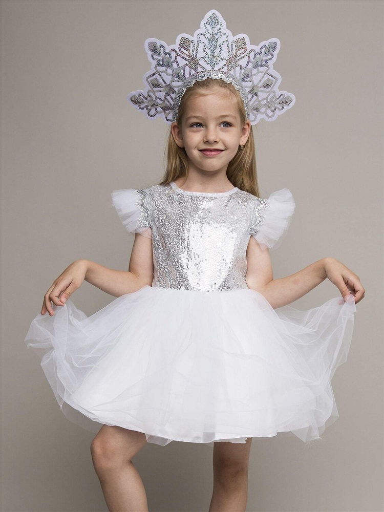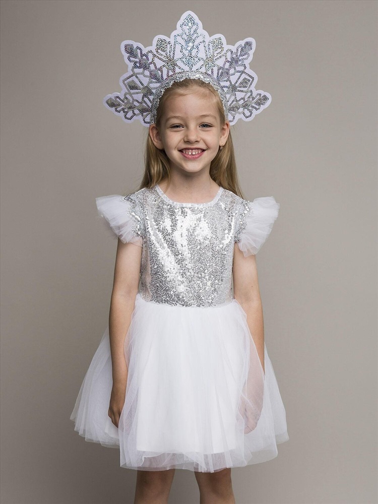 Карнавальный костюм «Снежинка Элис» — нежный и нарядный образ для утренников, новогодних праздников и театральных постановок. Лёгкое пышное платье с блестящим декором и воздушными деталями создаёт волшебный образ снежинки, а удобный крой обеспечивает комфорт во время праздника. Отличный выбор для маленькой принцессы!