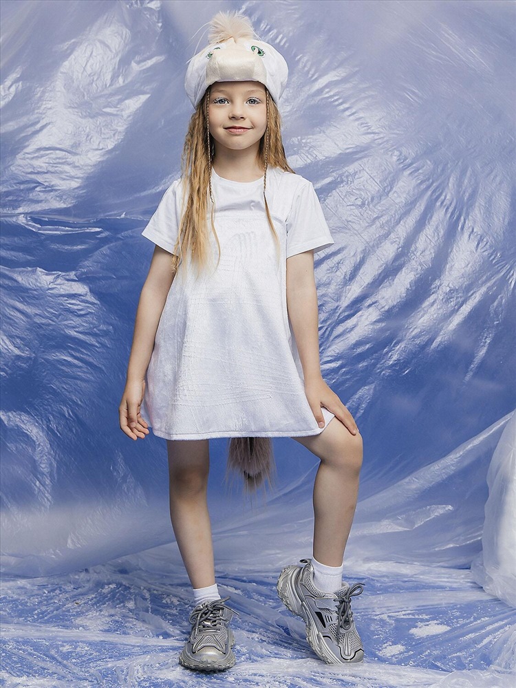 Карнавальный костюм Лошадка Луиза – нежный и волшебный образ для детей. Комплектация: шапка-маска с лошадиной мордочкой, белый сарафан с хвостом. Нежный белый цвет создает чистый и сказочный образ.