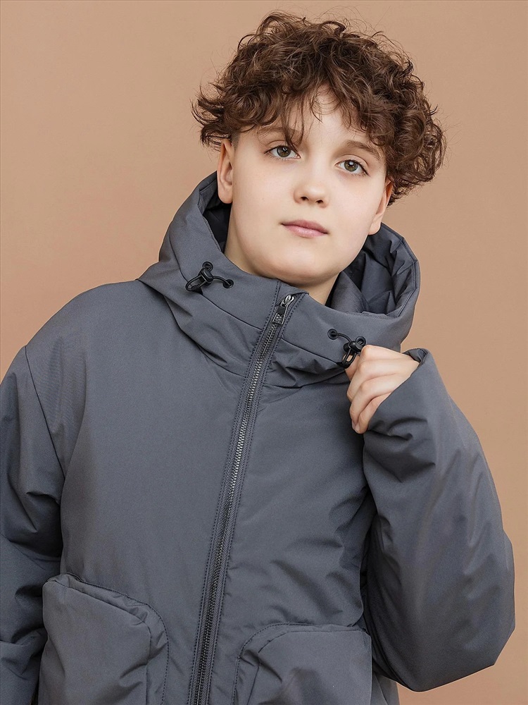 Рукава свободные, с удлинённой обтачкой и внутренней эластичной тесьмой для дополнительного тепла. Капюшон эргономичной формы регулируется по двум направлениям. Большой накладной карман на молнии с тёплой подкладкой делает куртку удобной для прогулок и игр.