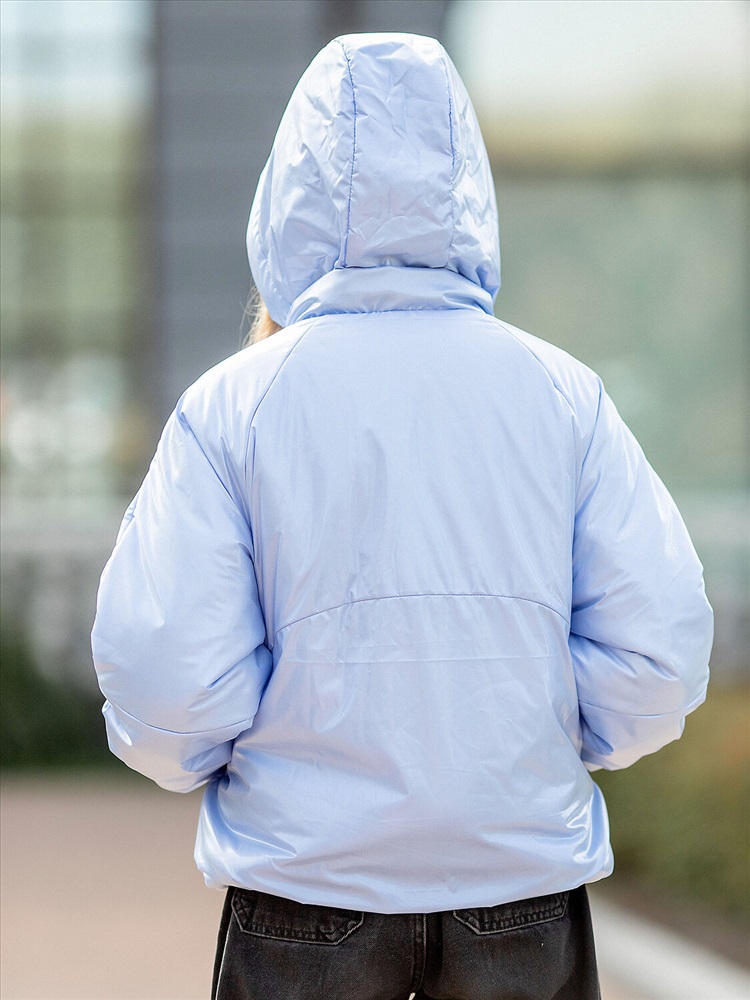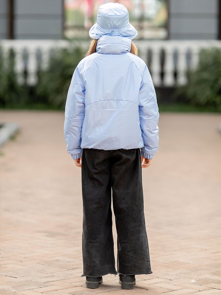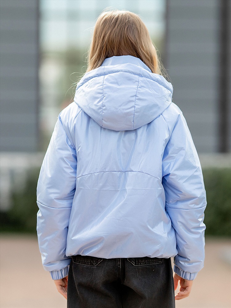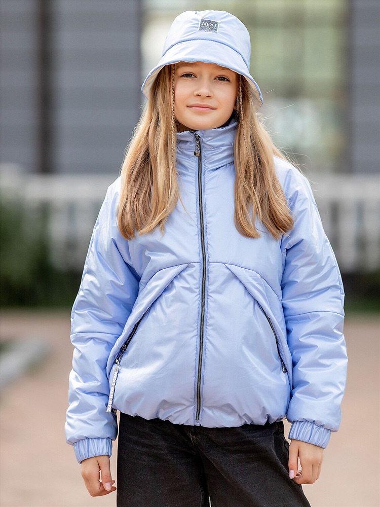 Куртка для девочки Ася в стиле спорт-шик с перламутровым эффектом в лавандовом цвете. Капюшон-трансформер сворачивается в воротник, а спереди прорезные карманы на молнии. Курточная ткань с водоотталкивающим покрытием DWR. На рукавах стеганые манжеты на резинке.