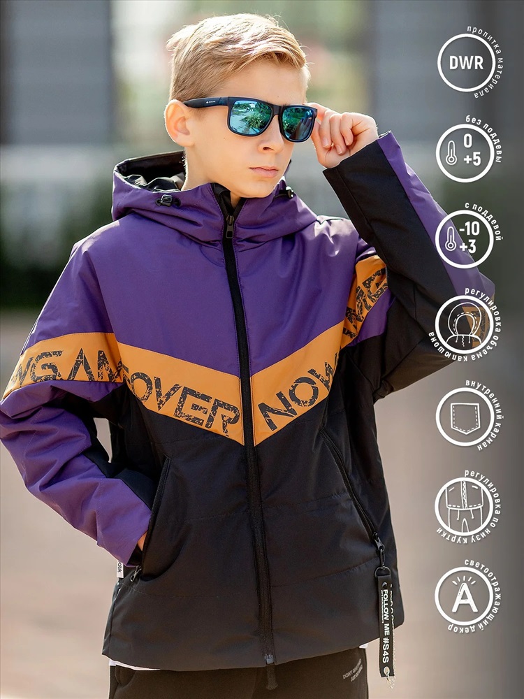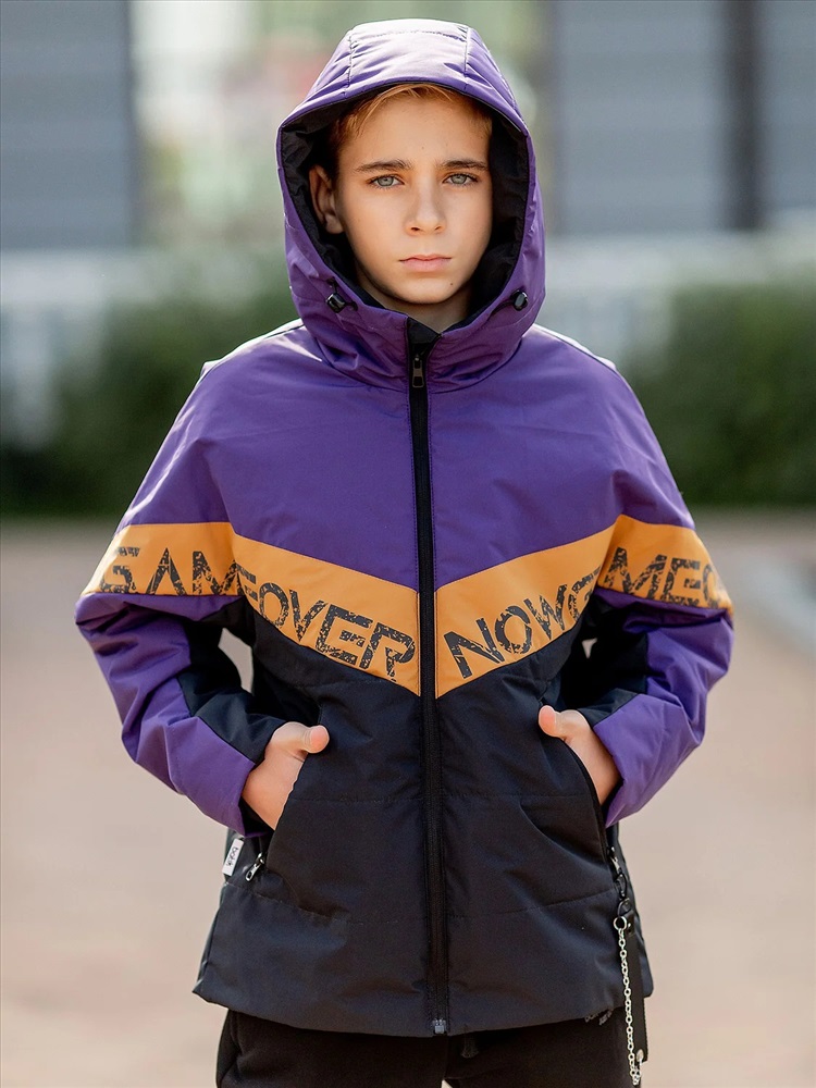 Куртка для мальчика Наруто утепленная на весну и осень из мембраны с водоотталкивающим покрытием. Утеплитель - лёгкий, гипоаллергенный, износоустойчивый и хорошо сохраняющий тепло. Несъемный капюшон на кулиске с утягивающим шнурком на стопперах. Боковые карманы на молниях с длинным навесом с одной стороны. Расцветка колор-блок "баклажан".
