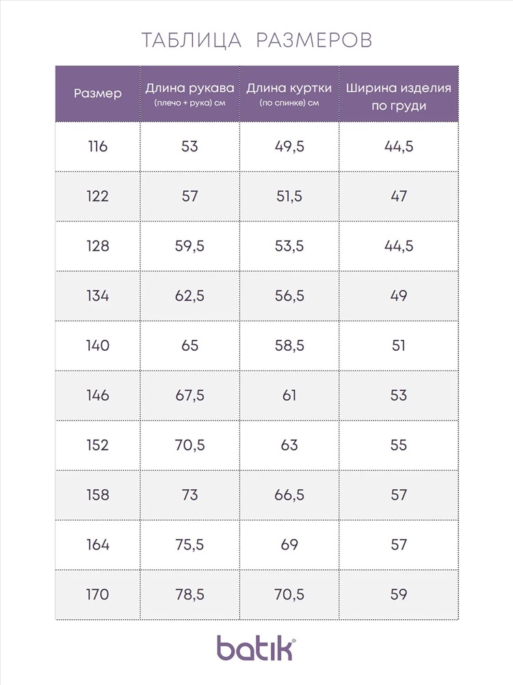 Производитель: BATIK; Артикул поставщика: 657-24в-1; Сезон: Осень, Весна; Год: 2024; Страна: Россия; Ткань верха: мембрана; Подклад: х/б; Утеплитель: 120 гр/м2; Российский размер: 116