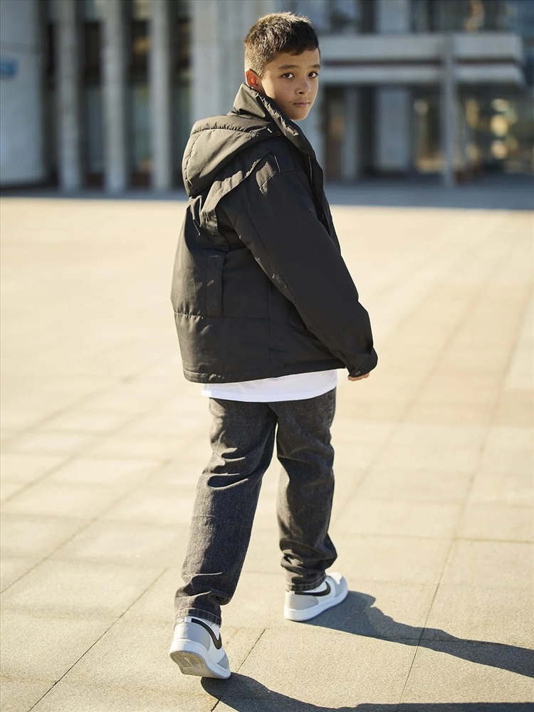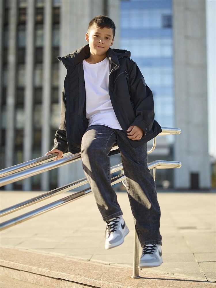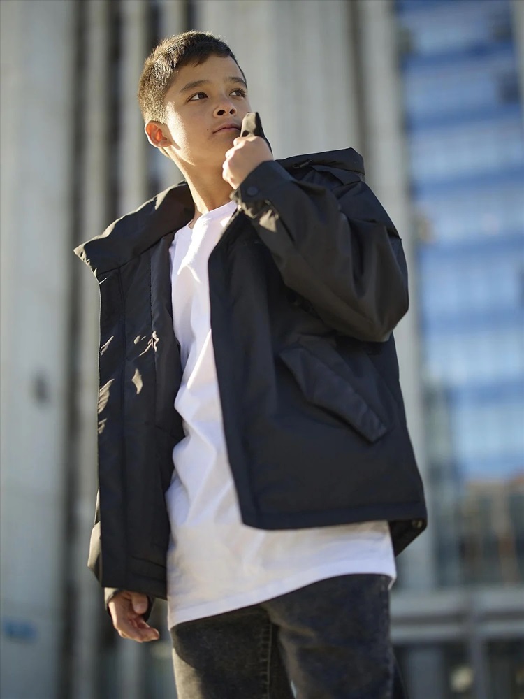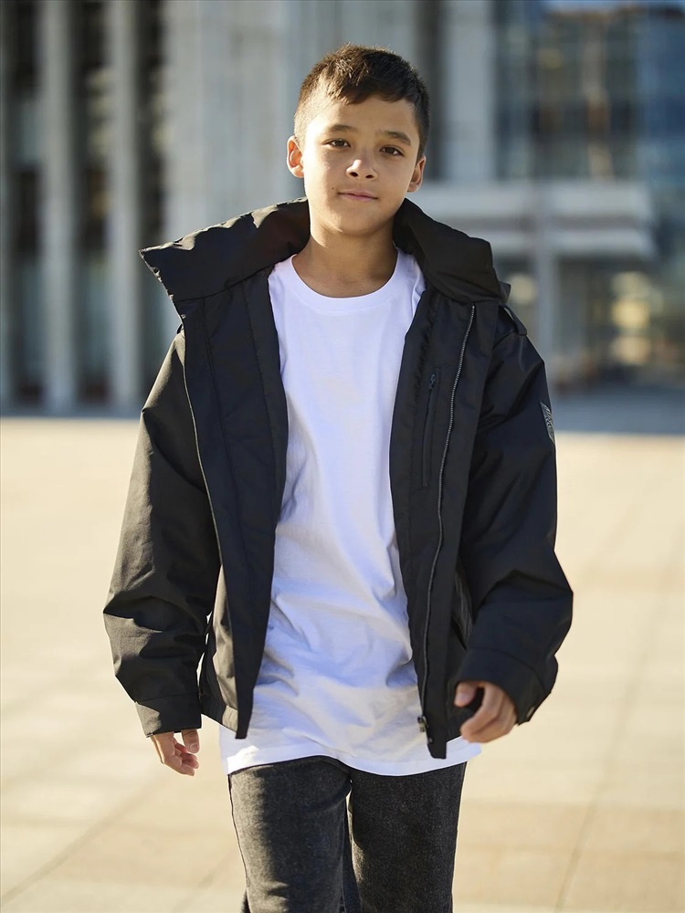 Куртка-парка для мальчика Снейк оверсайз выполнена из плотной фактурной ткани с мембраной. Центральная молния скрыта под цельнокроенной ветрозащитной планкой с магнитной застежкой. Высокий воротник также застегивается на магнит. На груди расположен карман на молнии, а удобные нижние карманы имеют клапан на магните.